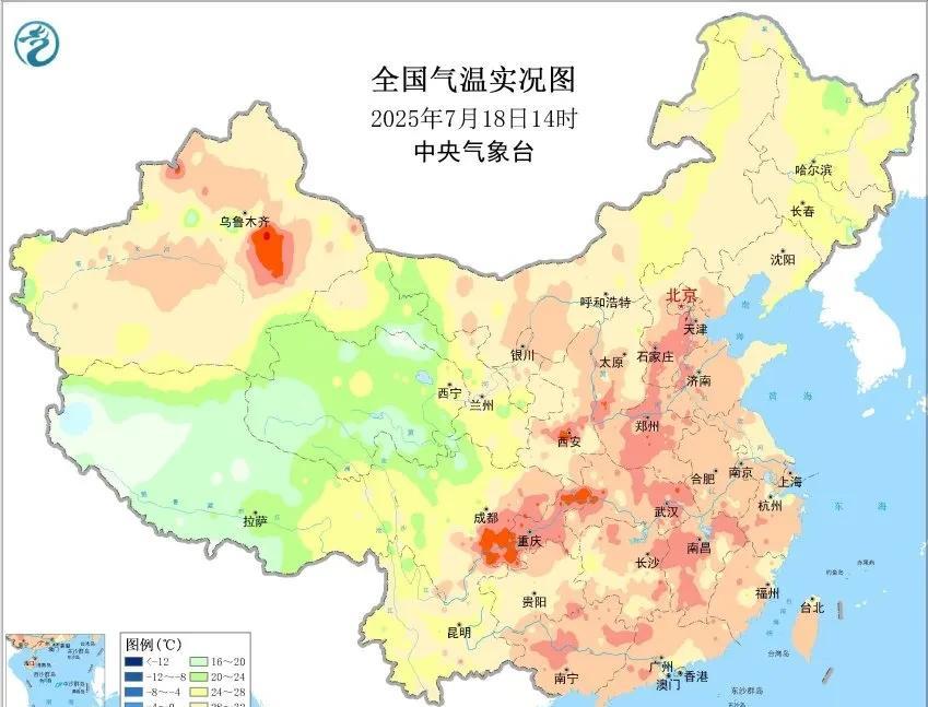 今天至14时,新疆吐鲁番盆地、陕西关中平原以及重庆局部仍有站点气温可达40℃以上