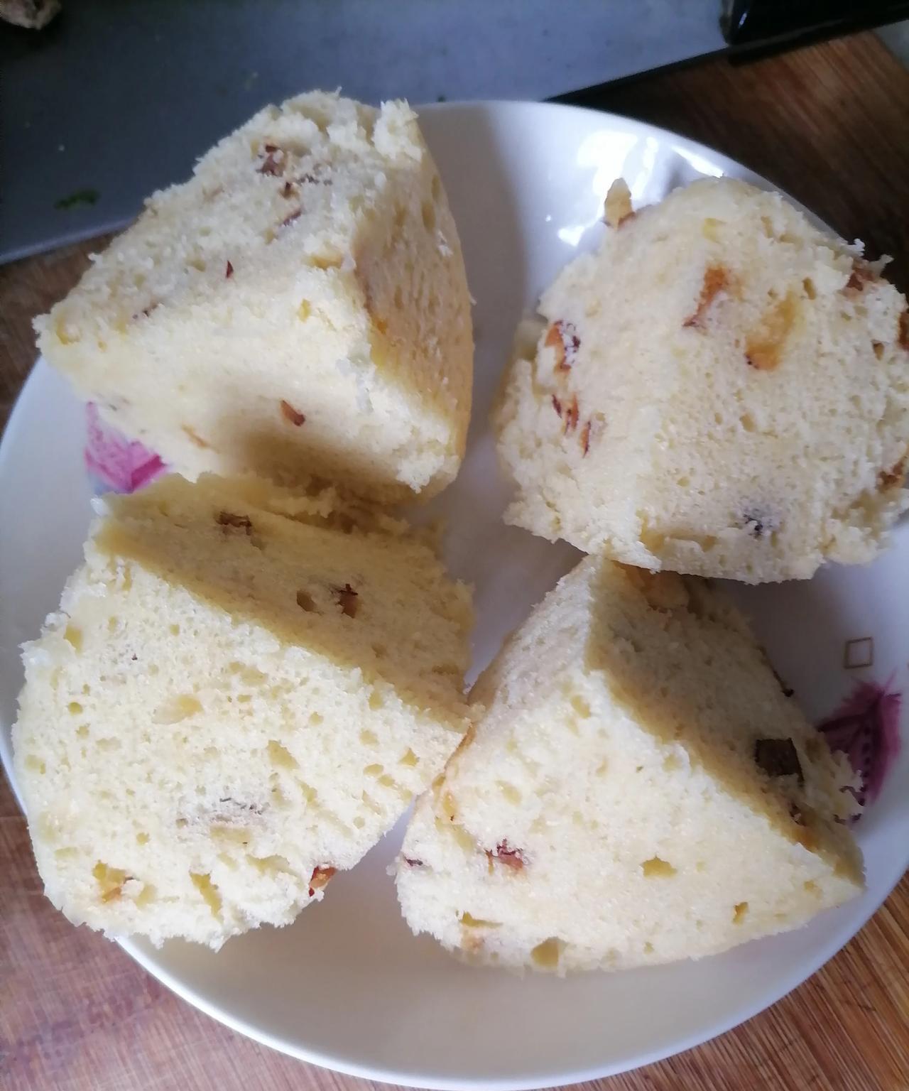 今天又有好吃的,馒头发糕[耶]味道还不错!