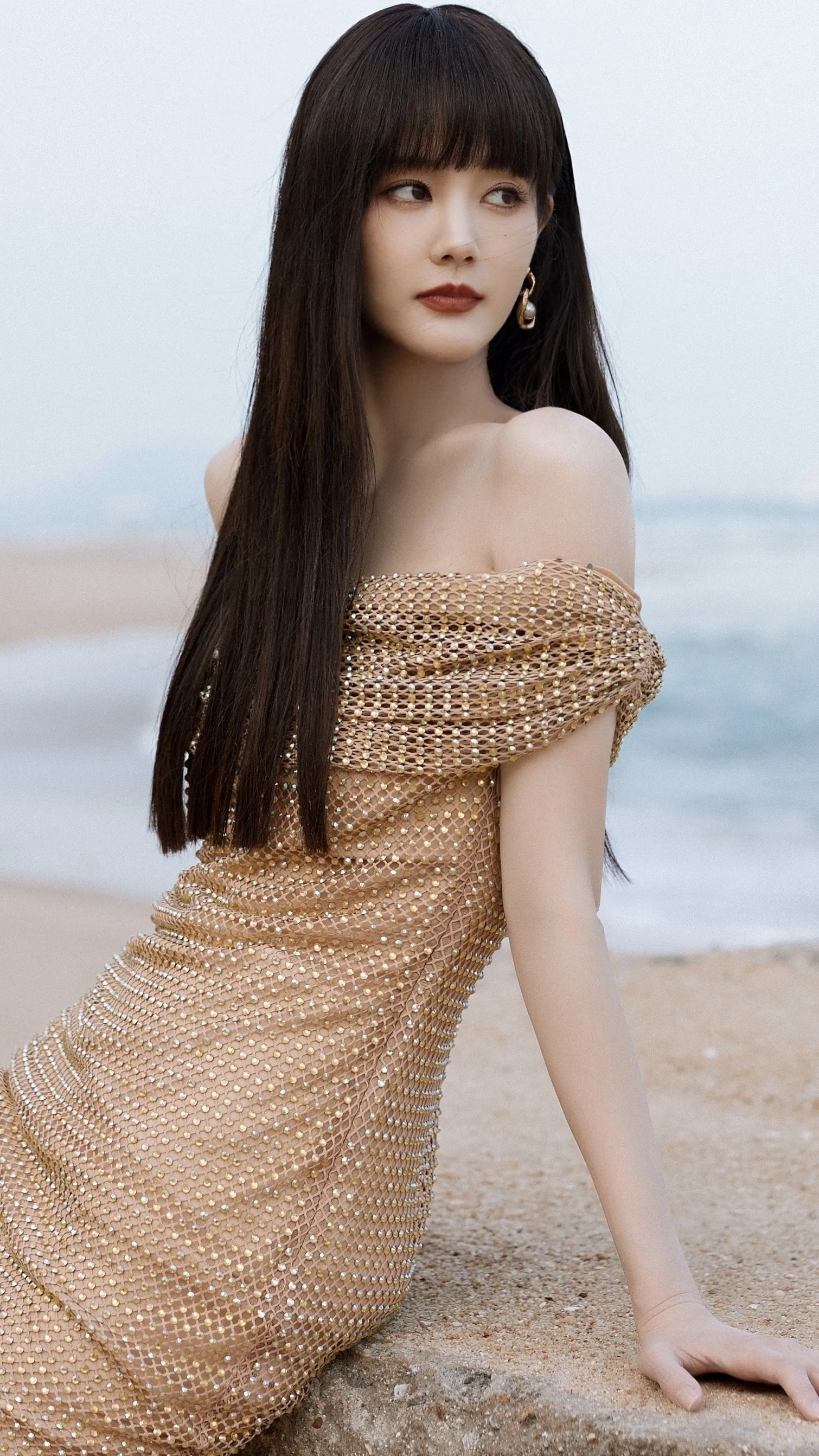 李一桐✨金色亮片连衣裙,闪耀夺目,气质满分