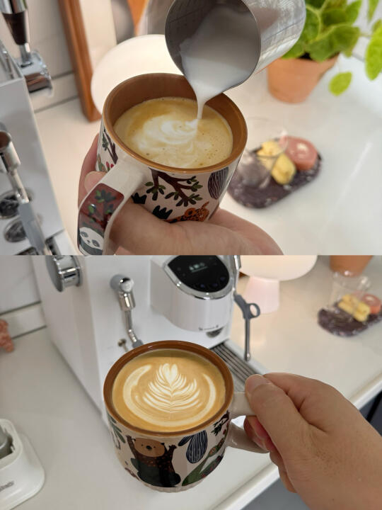 下午,闺蜜瘫在秋千上喊续杯,我又整了杯拿铁,还现学现卖整了颗爱心拉花。