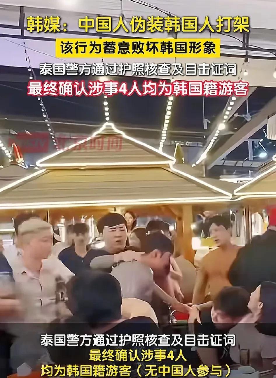 其实,韩国人在外挺好认的。 这些韩国人被泰国警察抓住后直接说自己是中国人,泰国警察就信以为真没有怀疑,但当让这些打架的韩国人出示证件时就露馅了。 而一开始泰国媒体报道时,并没有等泰国警方的结论,直接说是中国人在泰国餐厅打架,后来又说是两名中国人和两名韩国人在餐厅打架。 而韩国媒体更夸张,说中国人在泰国餐厅打架冒充韩国人败坏韩国形象。 韩国是啥形象? 其实呢,这些在泰国餐厅打架的都是韩国人。 这事儿不止是那几个在泰国打架冒充中国人的韩国人丢脸,不经查证歪曲事实报道此事的媒体更恶心。 朋友们,你们对此事怎么看? 欢迎大家在评论区探讨,留言…[送心]