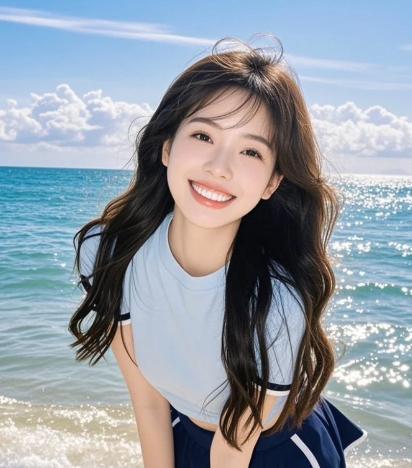 阳光下的海边邂逅,我的发丝随海风轻舞。