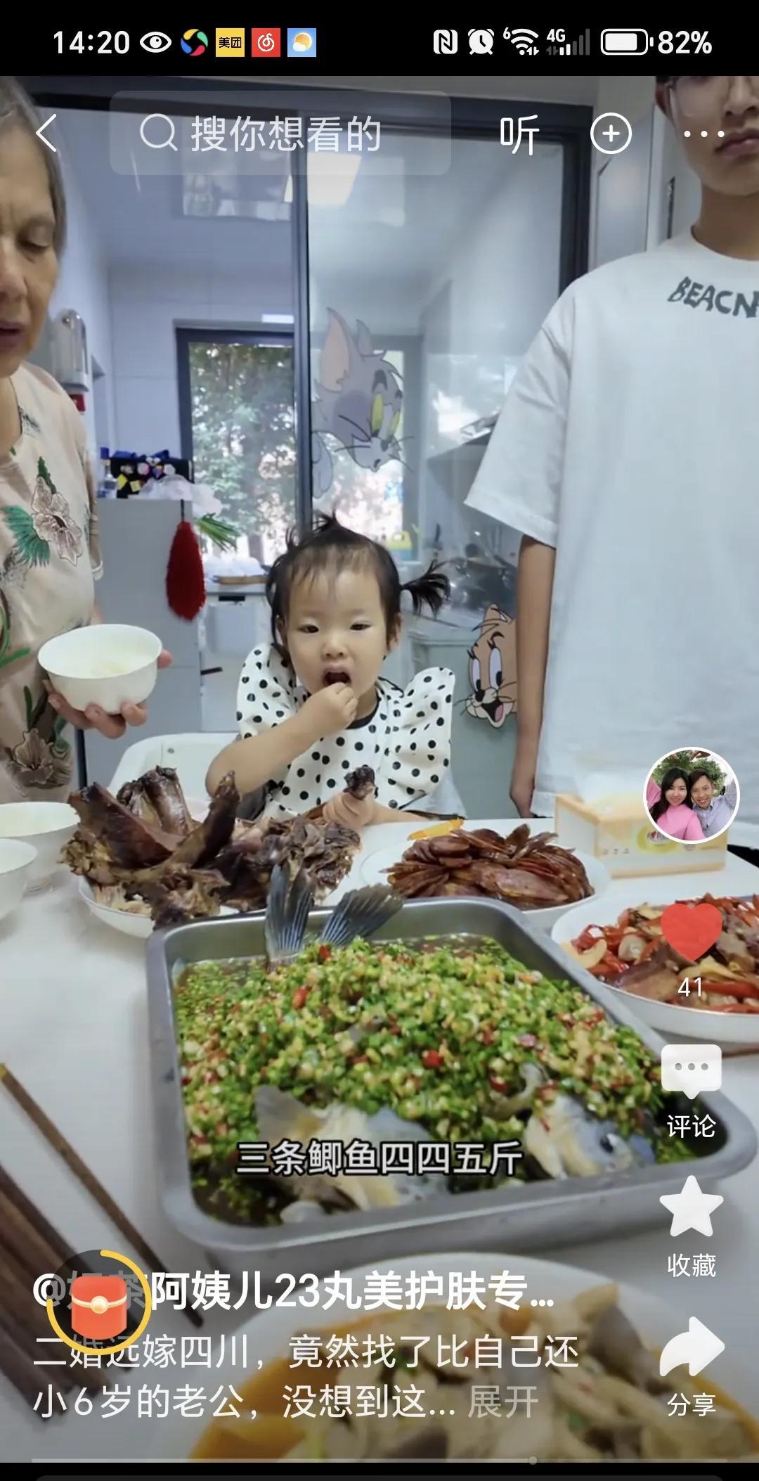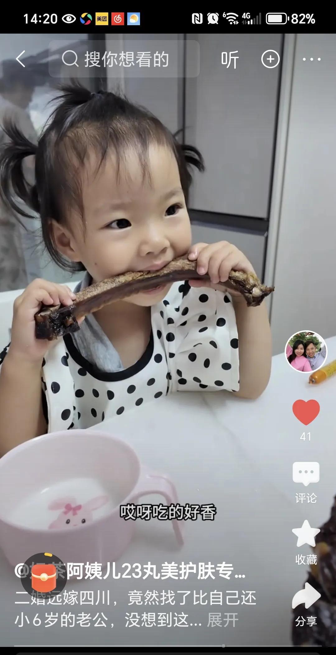 奶茶今天的视频标题依然吸睛; 二婚远嫁四川,竟然找了个比自己还小6岁的老公,没想到这么幸福,40℃的天气没办法出门他就在家做美食,有个会做饭的老公太好了。 奶茶很聪明,也很贴心,因为有许多新粉不知道她和龙哥的情况,所以时不时的要提上一嘴,让新粉丝加深了解她和龙哥的关系。所以,奶茶需要吸纳新粉,让粉丝团逐渐壮大。 龙哥一直被不喜欢他的网友说他软饭硬吃,我不这么认为,龙哥对直播不擅长,但是他照顾家庭还是很到位的,夫妻二人取长补短,共同为家庭而努力,所以他们才会有今时今日的财富。 腊排骨熟了,看着奶茶迫不及待的就拿起一条排骨直接就啃起来,一边吃还一边说不敢吃,因为太胖了,嘴巴说不能吃,但是手和嘴却很诚实,先吃为快[捂脸] 饭后奶茶为了彰显文化素养,加强母爱,教芊羽念诗,可能奶茶普通话不标准,还有点大舌头,导致小芊羽听不清楚,也跟着念错,不知道奶茶什么文化程度,还有明明是山村咏怀的怀字,她居然读成杯[捂脸]难怪网友喊话:奶茶的普通话别把芊羽带歪了,让叶子和龙俊来教[狗头]
