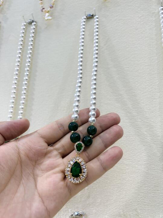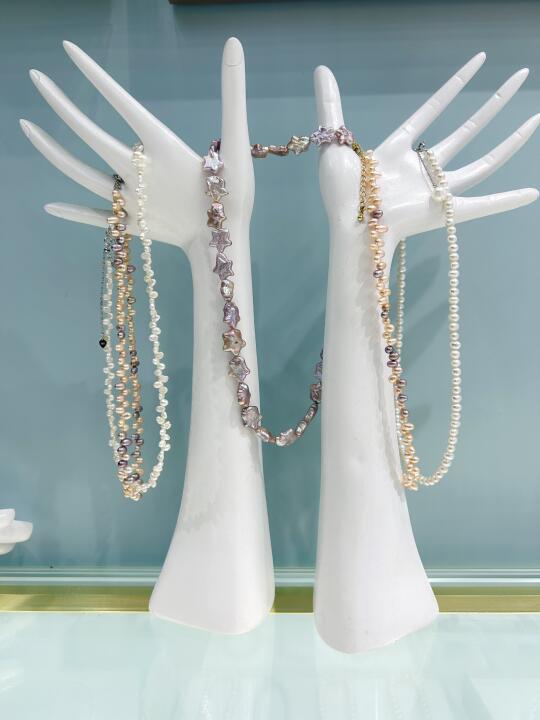 店里还有珍珠项链、珍珠发夹等等