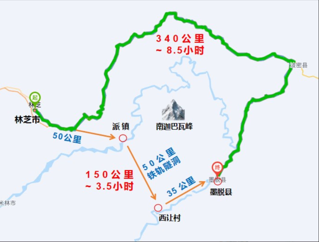 隧洞既然可以输水,当然也可以输送人、车、物。墨脱县虽然已经通了公路,但从林芝市到墨脱县全程340公里,在天气、路况良好的情况下,通行时间约8.5小时(百度地图数据)。笔者这里开个脑洞,再打一个与雅江水电站平行的隧洞,内部铺特制的双向铁轨,比如,具有遇故障自锁等功能,非常类似平板载货的火车,可运输人、车、货等几乎所有东西。如此一来,从林芝市到墨脱县城的路程可缩短到约150公里,通行时间约3.5~4小时,而且对天气状况的要求也会比目前低很多,岂不美哉!