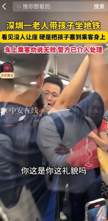 是你会让吗?深圳一老人带孩子坐地铁,看没人让座,硬把孩子塞到乘客身上,不仅将乘客骂哭,还叫嚣着找公安找法院,车上乘客劝说无果,警方已介入。