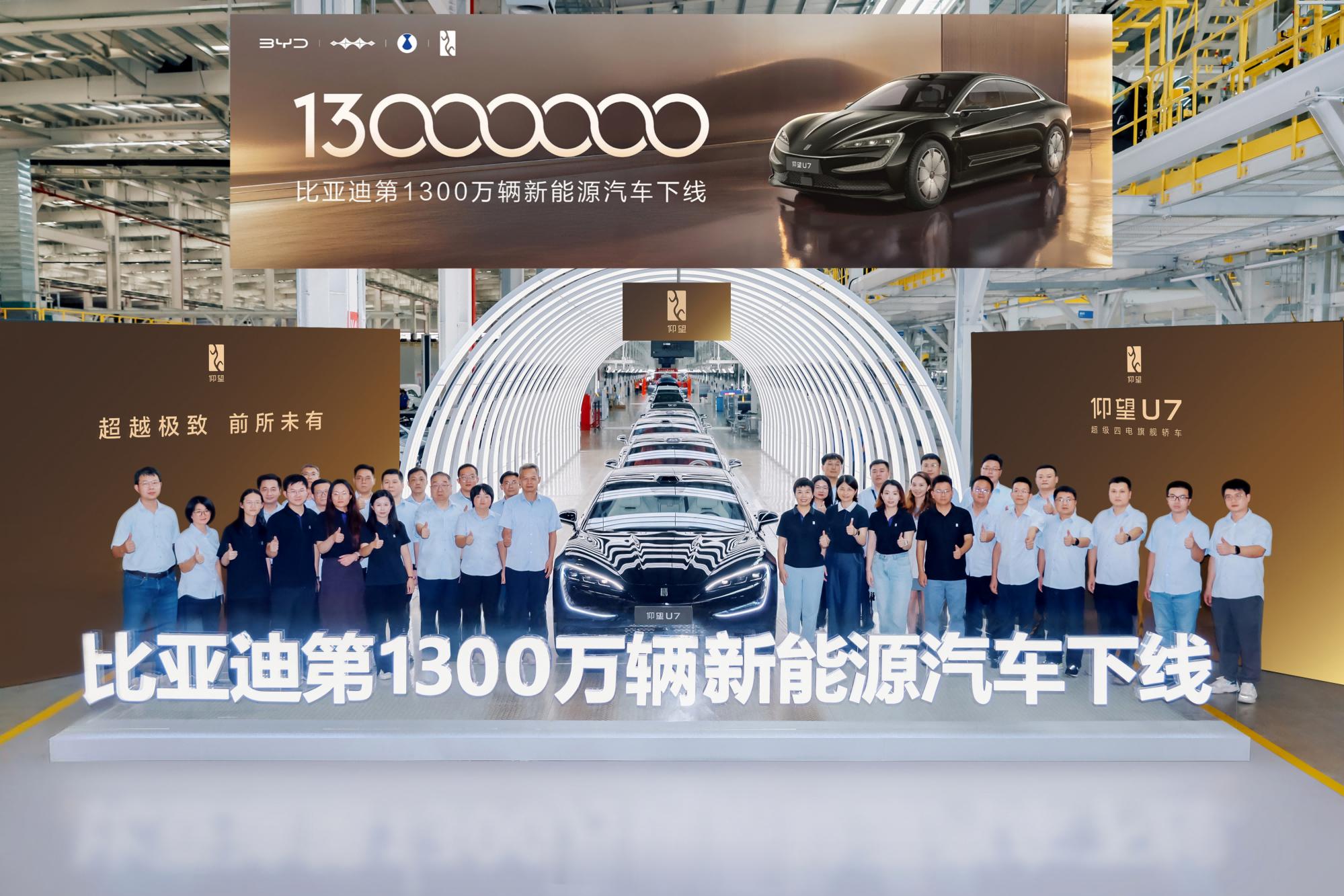 2025年7月21日,比亚迪达成全新里程碑,第1300万辆新能源汽车正式下线,才过去8个月就又下线300万台新能源汽车,并且这次下线的还是旗下最高端品牌的仰望U7。