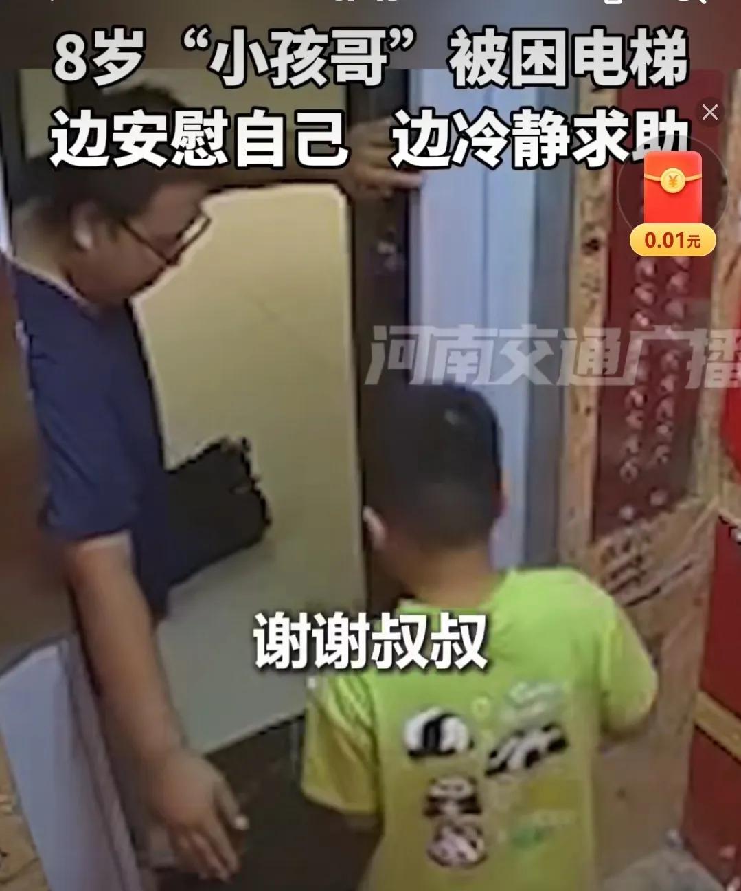 河北唐山八岁小孩哥被困电梯,教科书式自救给多少成年人上了一课。 近日《央视新闻》、《人民日报》等多家主流媒体转发河北唐山八岁小孩哥被困电梯,边安慰自己,边冷静自救的视频火遍网络。 1:发现电梯故障,精准操作。 当八岁小孩哥进入电梯后,发现电梯出现故障,不上不下,小孩哥第一时间从一楼开始按下所有楼层的按钮,这一部操作非常重要,相信安全培训的时候,很多成年人都学过这一条,小孩哥肯定也学过,他记住了,而且做得很好。 2:报警求助!礼貌有效沟通。 小孩哥按下11层以内的所有楼层按钮后,开始按响电梯里面的警铃开始报警求助,求救电话响起,对面传来一位女性的声音。 小孩哥:阿姨好!我现在在电梯里,被困在11层出不来,电梯不上不下,右边第一个电梯,我自己在里面,没有任何(其他)人。 3:自我安慰,有空不忘随时随地学习。 小孩哥求救成功后,管理处的阿姨让他别着急,被困电梯的小孩哥开启了自我安慰模式,“不能害怕,一会肯定就有人来帮忙,不要害怕,加油!”虽然内心很害怕,还是要为自己加油打气! 听到电梯外面有了动静,小孩哥还是委屈的哭了,我才这么小,怎么就出意外了?背会古诗吧!唧唧复唧唧,木兰当户织…… 他们来了,正开着呢!好!小孩哥这时候才深深地松了一口气,当维修人员打开电梯,小孩哥走出电梯还不忘说声“谢谢!” 观后感:感叹八岁的小孩哥,心理素质非常稳定,虽然内心也有紧张和害怕,但是能够保持情绪稳定,自救流程非常熟练,准确说出自己的方位和问题,这一点在报警的时候尤为重要,懂得自我安慰,不会绝望,虽然身居危险,不忘学习,可以成功转移自己的焦虑状态,相信孩子的家教非常好,所以孩子情绪稳定,随时随地不忘学习的孩子,成绩不会差,而且木兰辞是初中的课本,说明孩子唐诗宋词没少读,语言逻辑能力很强,很准,以后作文一定很好。 #晒图笔记大赛#