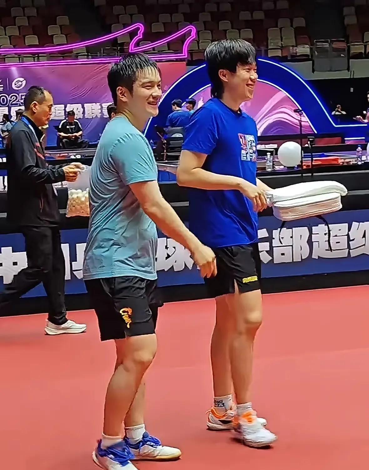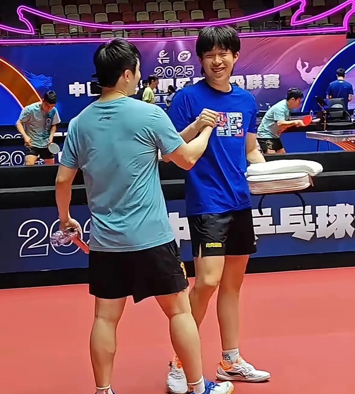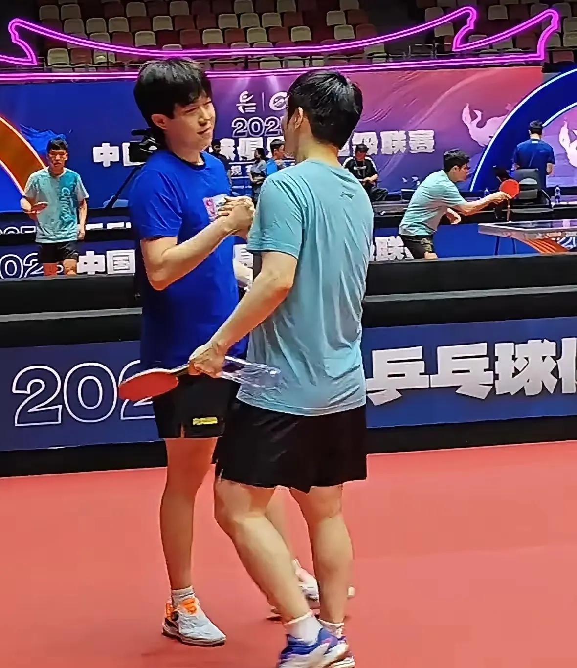 王楚钦一声“东哥”两位中国男乒最强组合“东楚霸王”的手再次紧紧握在一起。 厦门乒超联赛训练场地许昕、樊振东、周启豪三人聊天中,王楚钦远远走来,一声“东哥”小胖樊振东赶快迎上前去,头头和东哥的手紧紧握在一起,愿意时间在这一刻停止,久违了的同框画面。 曾经的东楚霸王组合所向无敌,东哥很少出现在赛场了,每看到小胖一次都感觉特别珍贵,一年以前也许觉得这样的画面太正常不过了,一年以后再看以前是多么美好。 希望洛杉矶周期还可以看到樊振东回归国乒正常训练,正常比赛,让东楚霸王带上林诗栋一起奔向洛杉矶,让国乒男队稳中前进,让所有的国乒领导和教练都安心,让王楚钦也不用压力山大,让东哥和头哥一起扛起国乒男队的大旗。 #晒图笔记大赛#