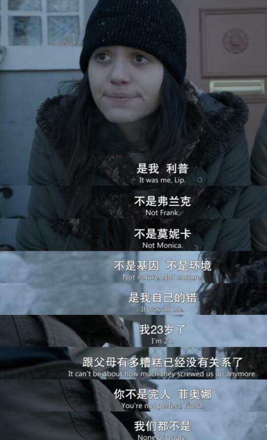 他们绝大部分有个共性——低配得感!像Fiona,Lip,Ian他们中有的善良,有的勤奋努力,有的聪明,明明很有希望走出南区过上更好的生活,但都被自己的低配得感和低眼界,低道德感给毁了一生