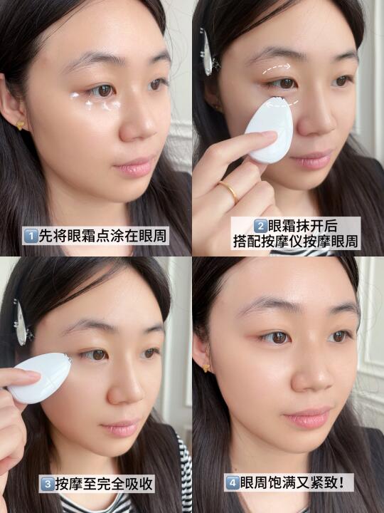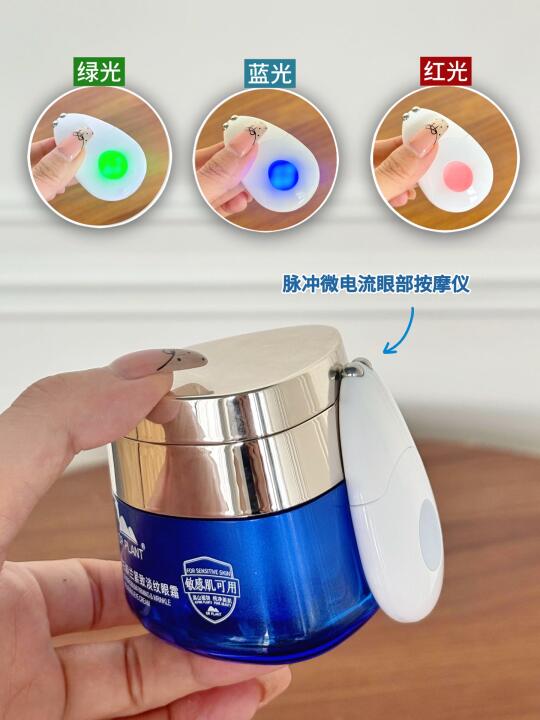 还很贴心的搭配了个EMS脉冲微电流按摩仪!绿光舒缓放松眼周,蓝光淡化黑眼圈,红光提拉紧致乳霜质地一抹化水不给眼周脆弱的皮肤增加负担,搭配按摩仪按摩吸收就像给眼周做了个spa!