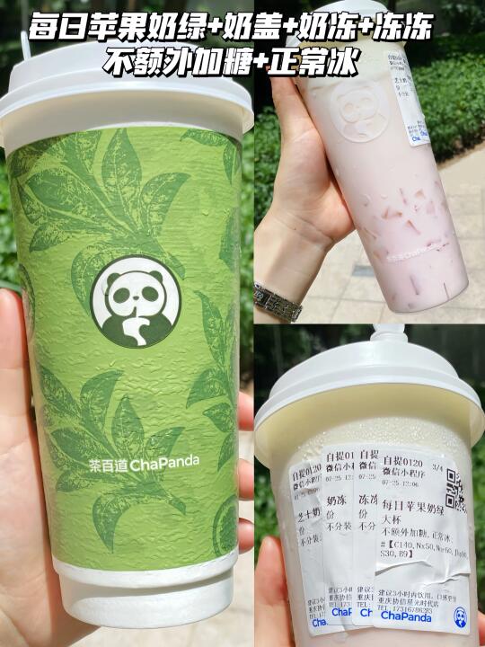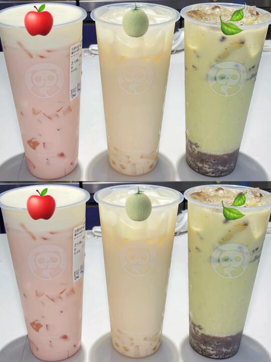 三伏天的长沙真是热的受不了!! 每天下班回家的快乐就是一杯冰奶茶谁懂啊! 茶百道又上新品了,果断点了三杯水果鲜奶茶! 🔥附上点单攻略: ✅每日苹果奶绿➕奶盖➕奶冻➕冻冻➕不额外加糖➕正常冰 ✅冰吸薄荷冰奶➕马蹄爆爆珠➕奥利奥碎➕三分糖➕正常冰 ✅仲夏蜜瓜冰奶➕脆啵啵➕椰果➕三分糖➕正常冰