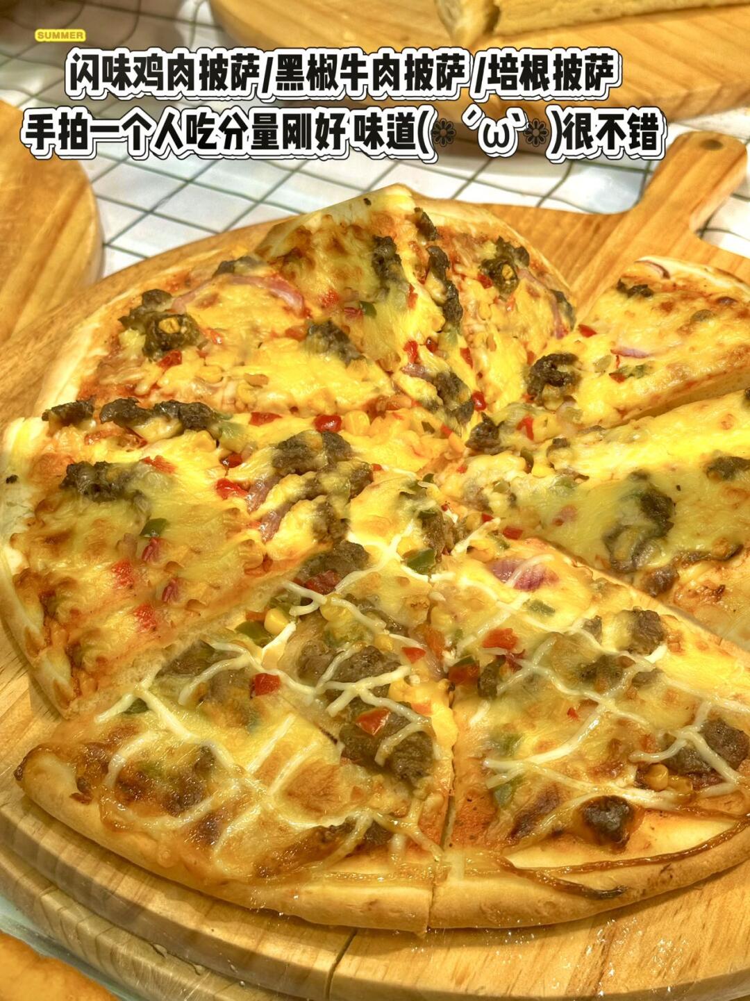 ✔️ 闪味手拍披萨:鸡肉/黑椒牛肉/培根,三种口味盲选不踩雷!料足拉丝,微波叮一下香晕了!