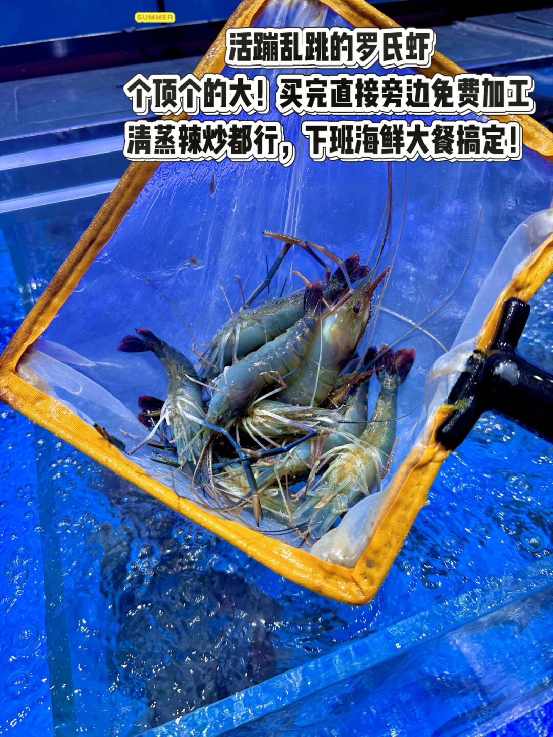 ✔️ 爆黄罗氏虾:这么大一只,个个满黄!盐焗、芥末…多种口味任选,鲜到舔手指!