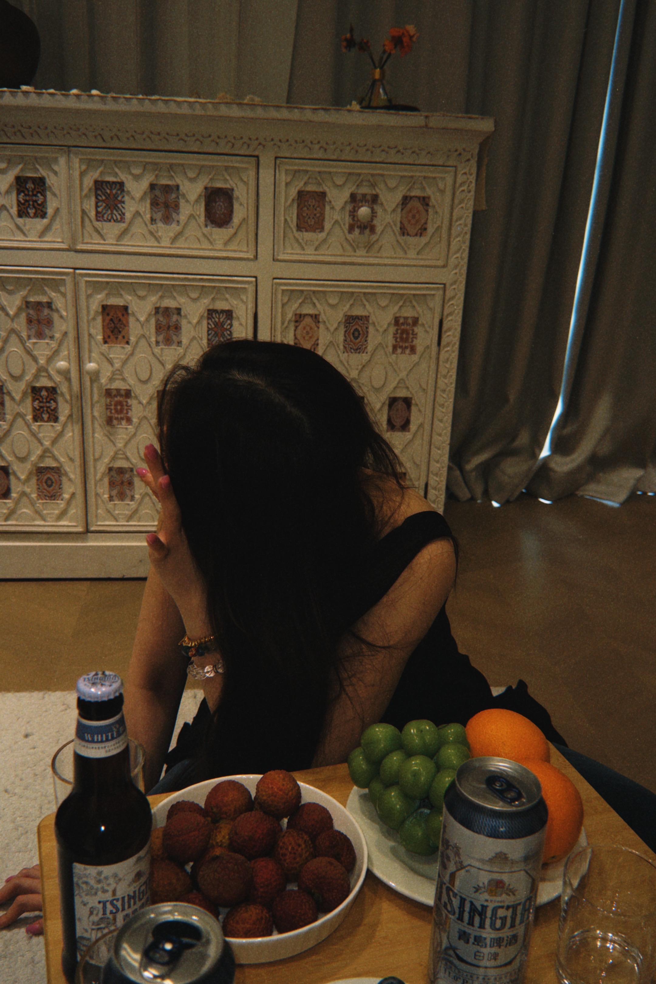 运动后放松时刻,穿红色卫衣,享受宁静时光。
