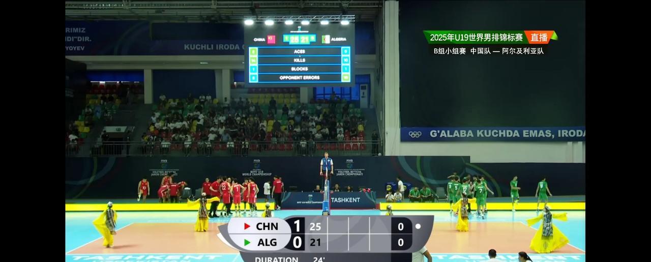 中国男排19岁年龄组世锦赛小组赛正在进行,目前是中国男排和阿尔及利亚男排的比赛,中国男排25:21先赢下第一局,两支队伍的实力差距还是有点大,中国男排取胜不是问题,只是失误有点多,第一局失误就送了对手十分。如果失误把控的好一些,局面会更加好看,继续加油吧,年轻的小孩儿们。