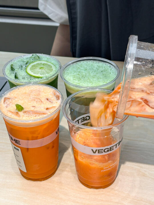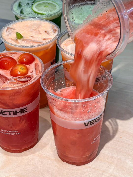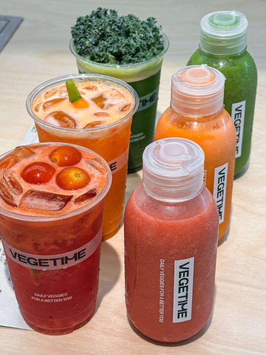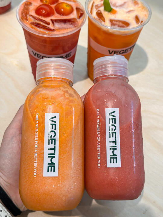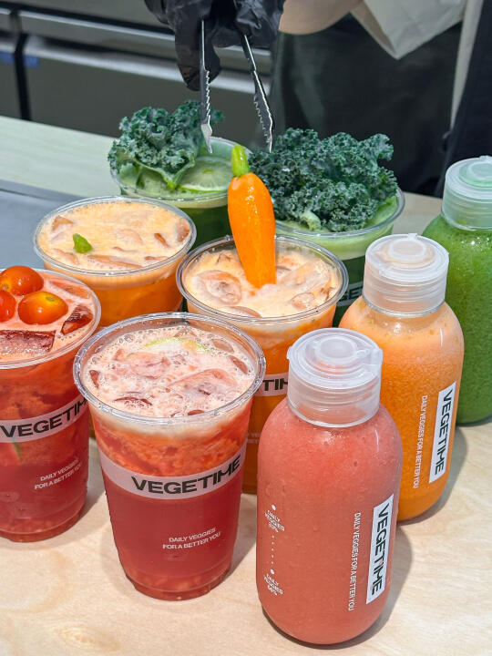 夏天是真的离不开果蔬汁! 这家终于开了!是实打实的新鲜水果蔬菜制作的! 在门店可以看到店员一直在清洗水果蔬菜 而且品质很好~看着都很新鲜!!! 🥬 轻体小绿杯真的很好喝! 看起来绿油油的一杯实际用料超级丰富…… 羽衣甘蓝、苹果、梨 、香水柠檬... 喝起来有淡淡的草本回甘! 感觉我减脂期也可以放心喝了! 一日量小红瓶也挺推荐! 听说有16种果蔬!酸酸甜甜,真的越喝越想喝!