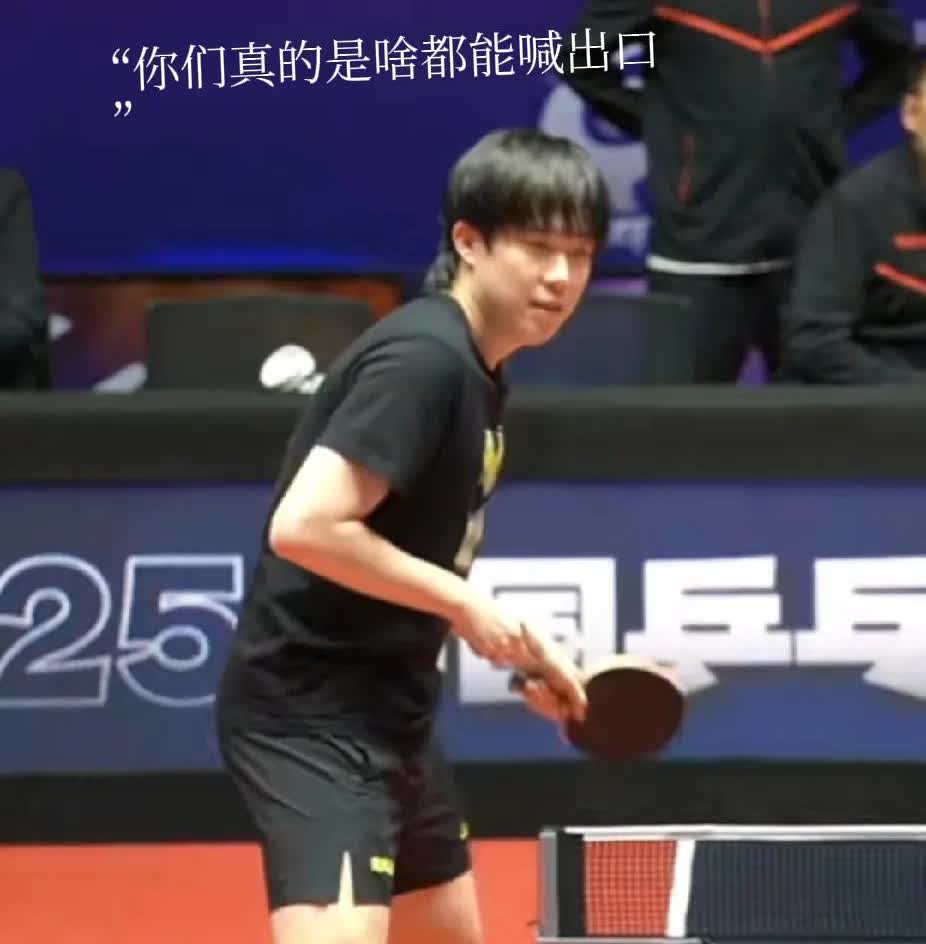 王楚钦的球迷真的是太能整词儿了。 王楚钦在热身训练, 观众席上响起一阵喊声, “天降猛男王楚钦,魏桥有你真放心。” 这口号把王楚钦都喊笑了, 还得使劲憋着。 后面坐着的尹指导, 也一脸笑意。 这欢乐的场面很欢乐。 其实运动员和球迷就该这样, 哪里有那么大的敌意? 什么喊声大了, 影响比赛了。 一个球迷没有, 你关起门来自己打球, 有意思吗? 打比赛, 就是球迷和运动员的互动。 当然,一些习惯不好,素质不高的球迷除外。 比方说,开闪光灯的 骂运动员的, 统统都拉入黑名单, 以后禁止现场观赛。
