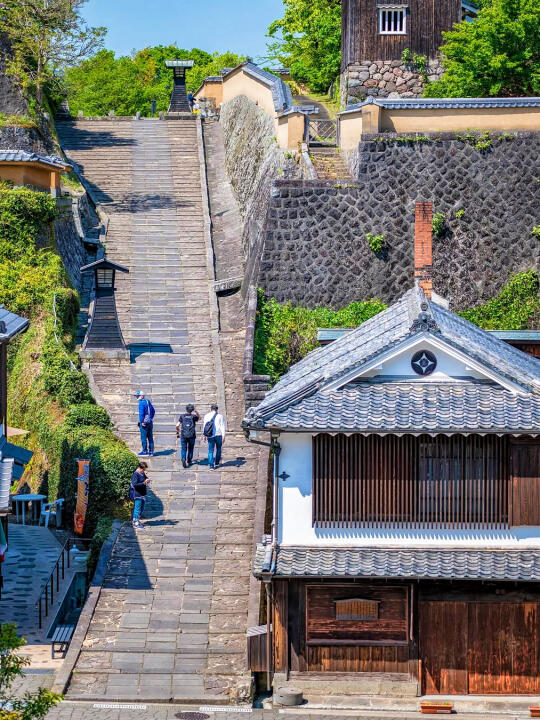 杵筑城下町有点类似京都的氛围感,📷很出片~另外,长街上有一些武士旧宅(庭院修的很漂亮)、美食小店、茶饮老店等!穿着和服可以免费出入武士旧宅参观嗷~对了,还有一家200多年历史的煎茶铺很值得坐上一坐~夕阳之下,再去海边看海中鸟居(入围日本夕阳百选),简直不要太完美!