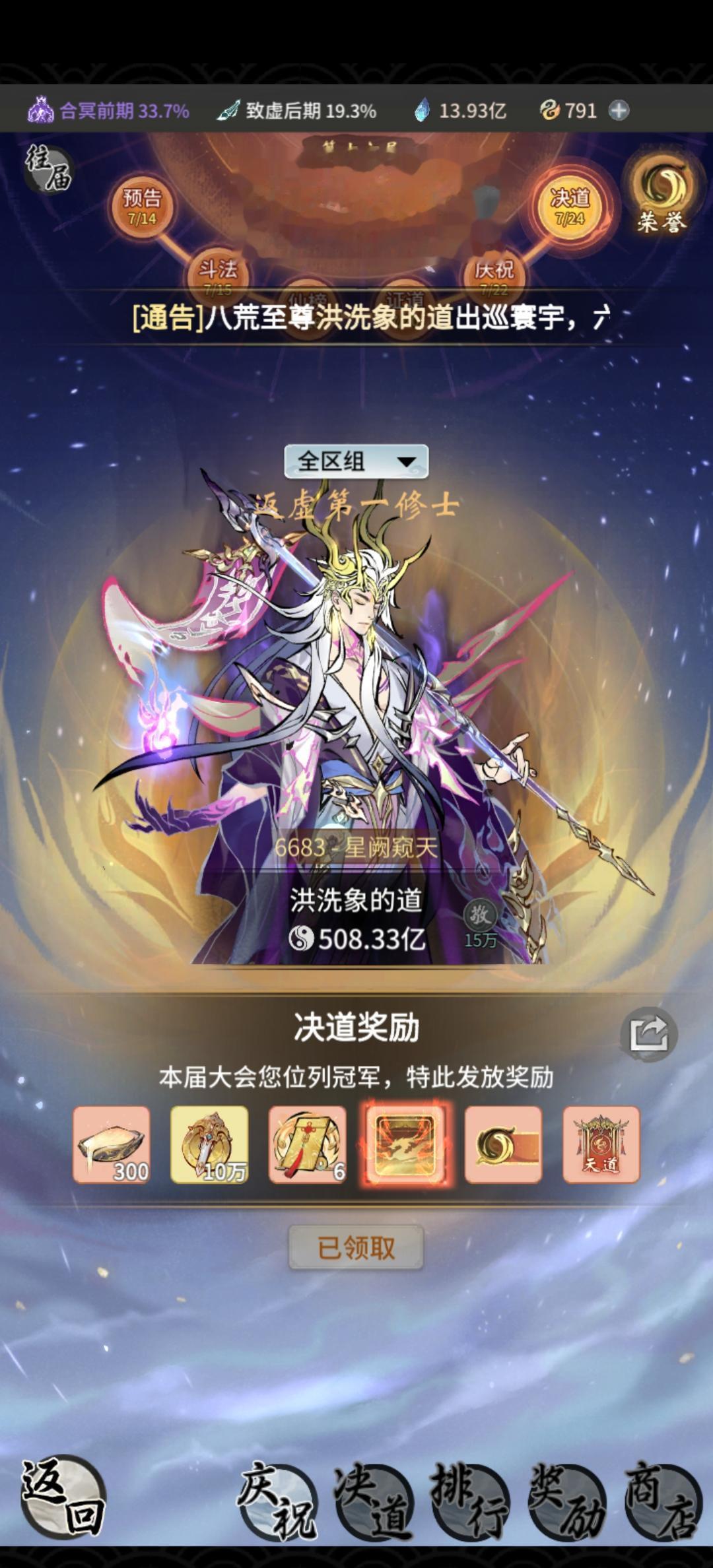 铭记真仙5.2107万亿 申请迁越,准备突破金仙