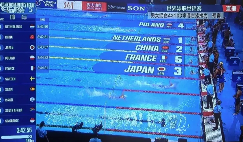 美国队出局。男女4×100米混合接力爆出大冷门。奥运会纪录保持者美国队3分44秒50的成绩小组第十被淘汰出局。中国队3分42秒81小组第三进入决赛。