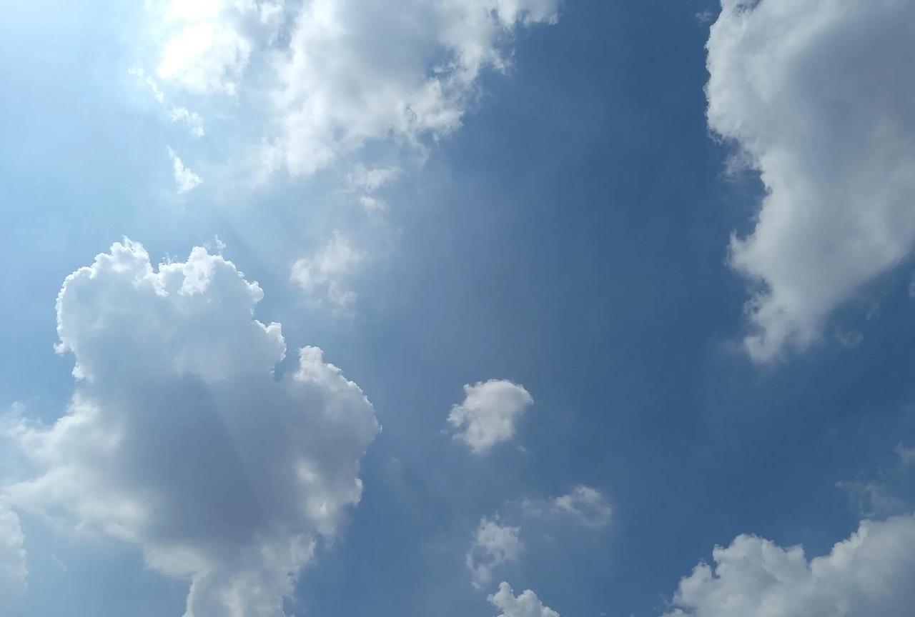 我相册里最好看的蓝天照片,是在德州拍的。那画面就跟漫画里一样,蓝天干净得像被洗过,大朵大朵的白云随意飘着,随手一拍就是“云端大片”。 高楼大厦旁,绿树和花儿让景色更有生机。云形态各异,像溜达的羊群,又像海上的浪花。有时云朵调皮地遮住太阳,带来片刻清凉。傍晚,夕阳给天空染上橘红,白云如棉花糖与晚霞交织,温柔又浪漫。街头小公园的花儿仰着头,风一吹就晃悠,仿佛整个世界都被治愈了。这照片我一直留着,每次看都心情愉悦。