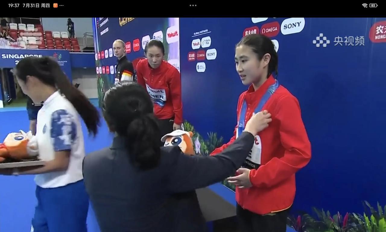 昨天2025年新加坡世锦赛10米跳台颁奖上,发生乌龙事件! 周主任把银牌挂在了第