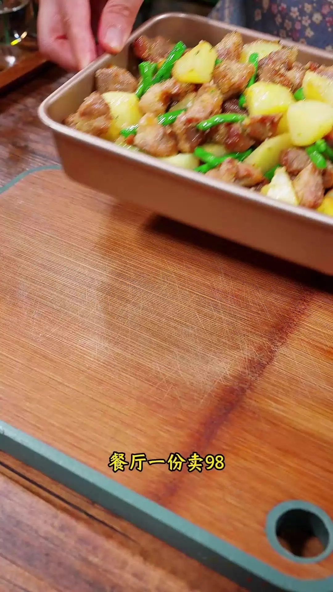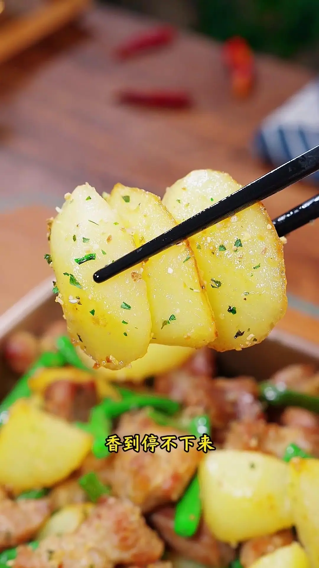 鲜嫩的梅花肉配着焦香的土豆,香到停不下来。