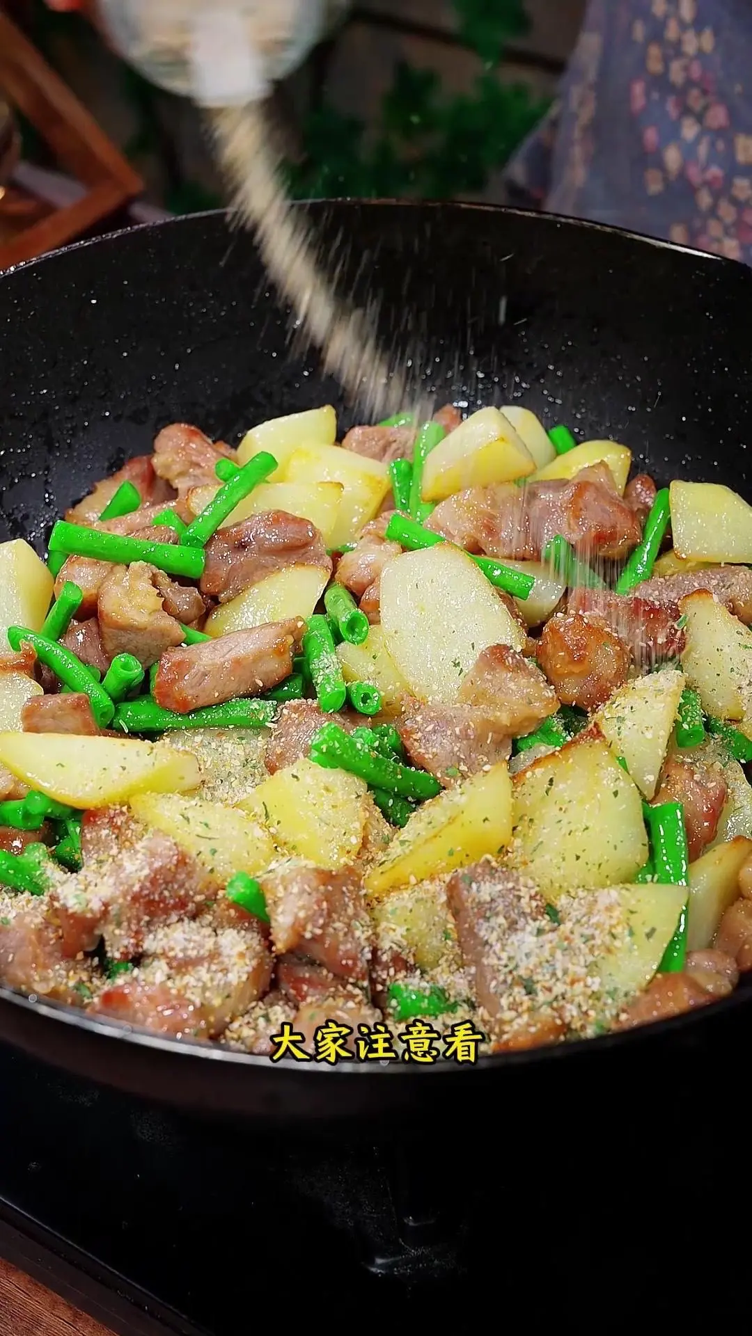 🍲猪肉土豆豆角的神仙吃法。餐厅一份卖98,其实在家做十几块钱就能搞定,连挑食的孩子都抢着吃。