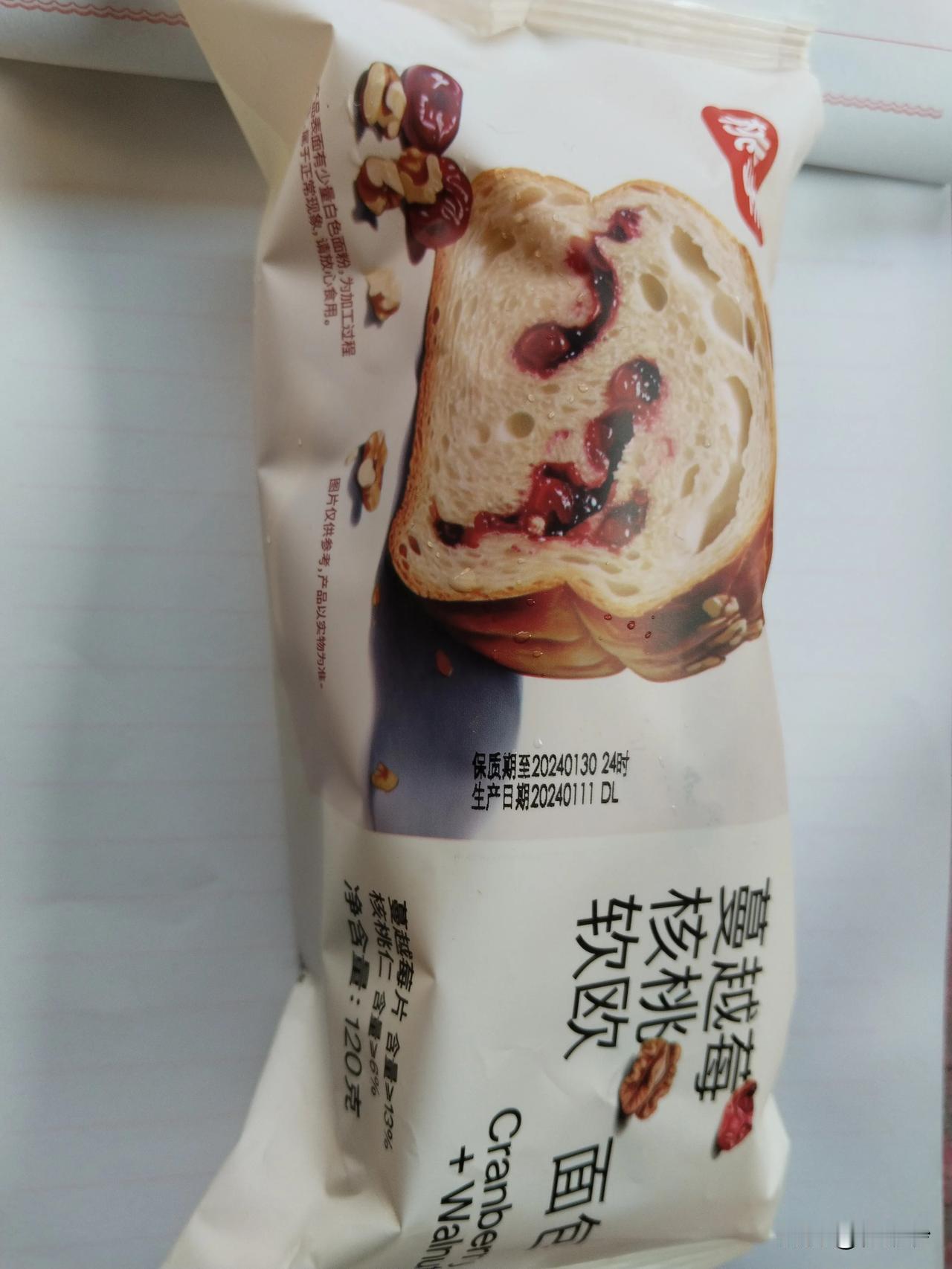 蔓越莓面包来了! 广西老表吃鲜蔓越莓酸爽的表情令人忍俊不禁,尽管它营养丰富,据说还有药用价值,但生吃的确让人难以下咽,一般都是经过再加工才进入市场与消费者见面。 这不,没吃早饭的我,在大连东港商务区道边一家便利店发现了这两款蔓越莓面包,如获至宝花了11元一样买了一个,然后迫不及待品尝起来: 面包松软香糯,点缀期间的蔓越莓干酸甜可口,让舌尖沉睡的味蕾霎时活跃起来~~哇!好吃极了! 我看了一下面包的包装袋,生产厂家都是北方的,不知道南方和广西的货架上有没有蔓越莓面包,绝对值得大家品尝。