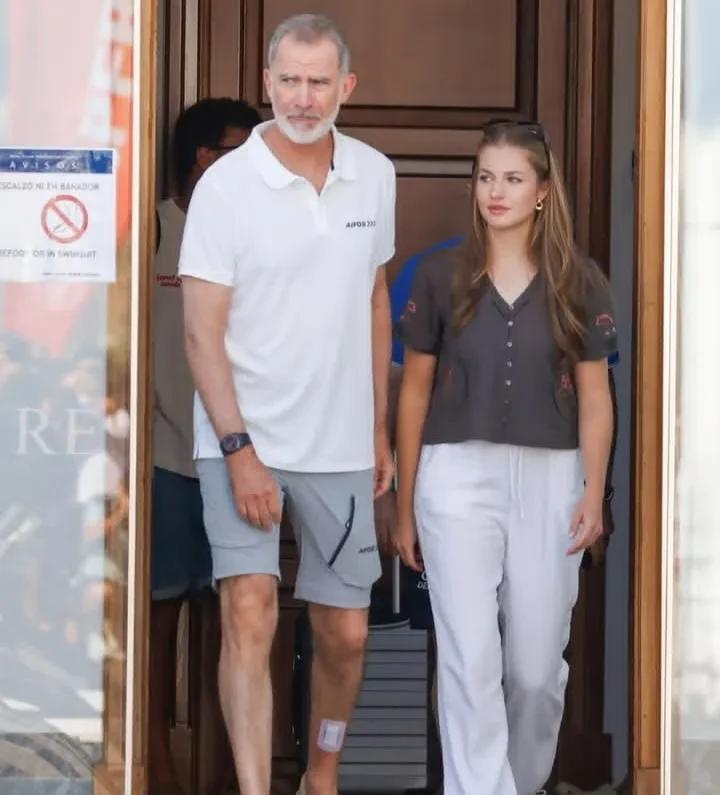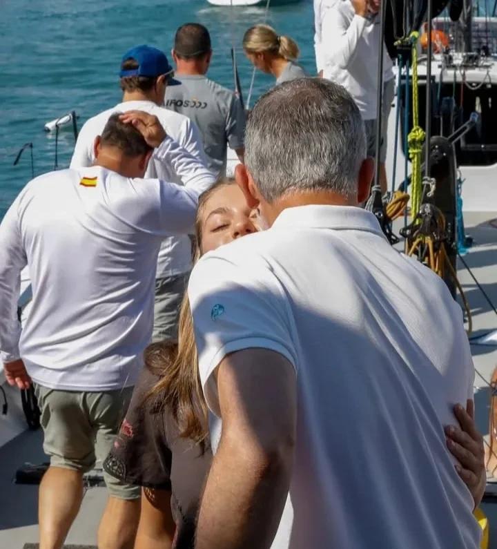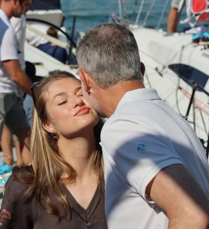 莱昂诺尔和爸爸一起参加“国王杯”帆船决赛,妈妈莱蒂齐亚与妹妹索菲亚缺席。 这位1