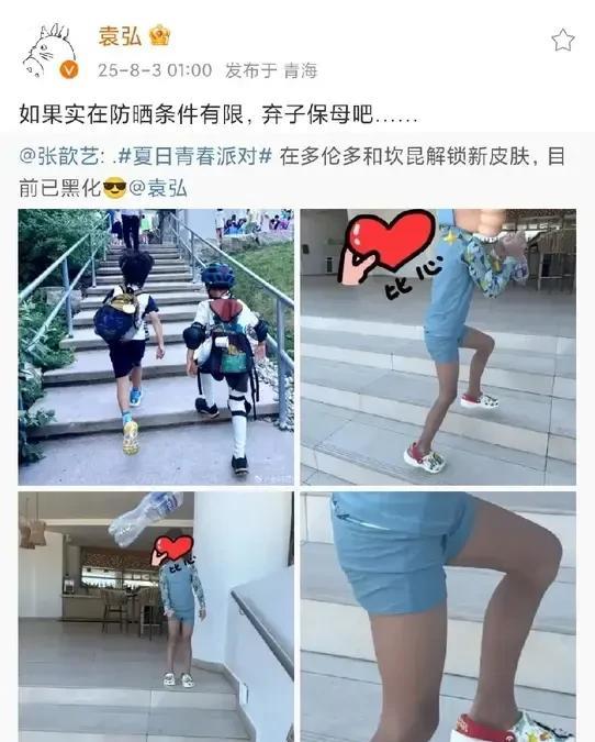 袁弘支招张馨予做防晒 8月3日凌晨,袁弘在社交媒体发文,给张歆艺提出了防晒方面的建议。 起因是,张歆艺8月2日发文说,在外边领着孩子们度假,晒黑了; 所以袁弘给出建议: 如果实在防晒条件有限,弃子保母吧…… 还得是袁弘啊! 这句话说出了深深的爱! 虽然是一种玩笑的形式; 每当看到夫妻之间开玩笑,就知道他们关系很融洽,过的很幸福吧? 祝福!