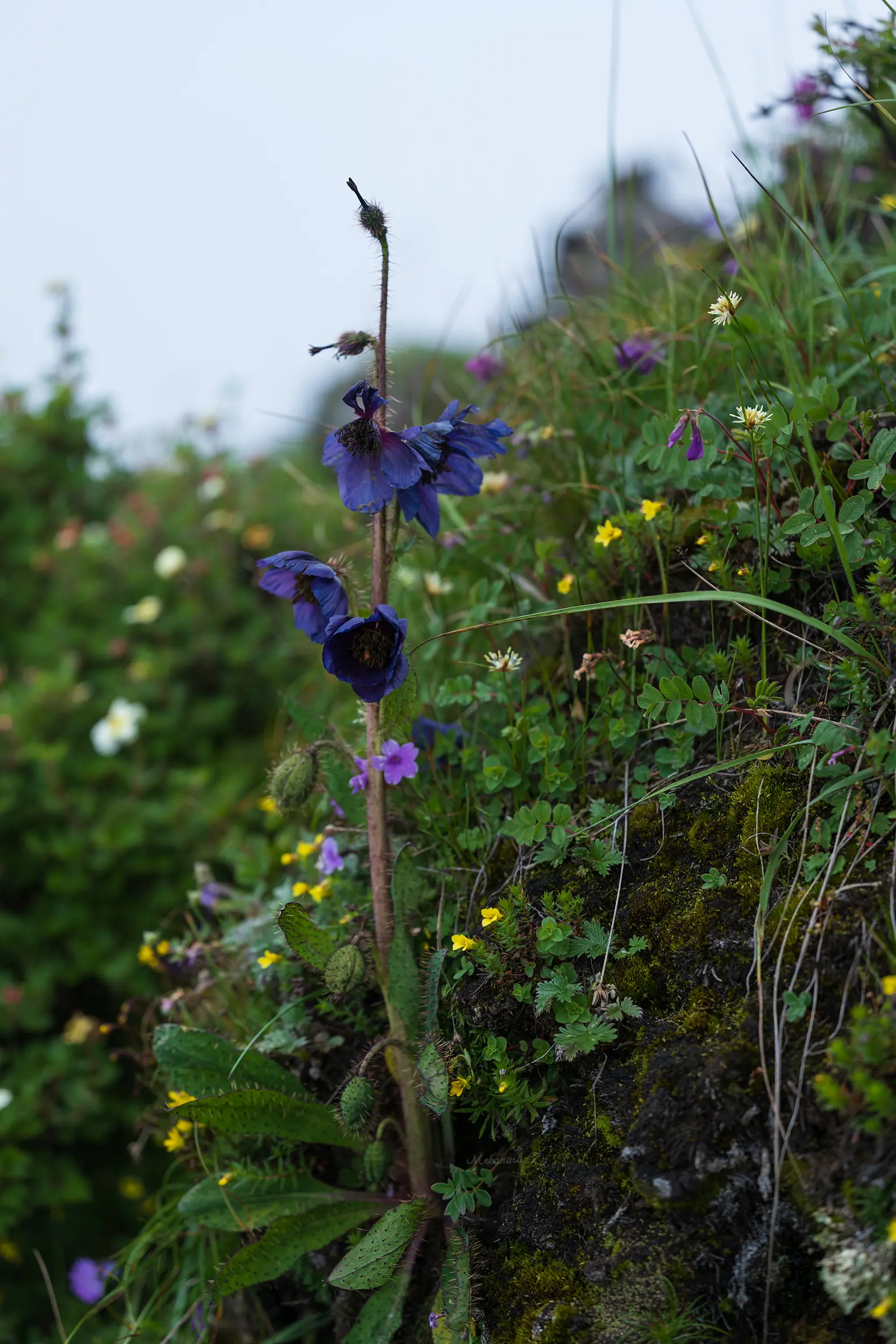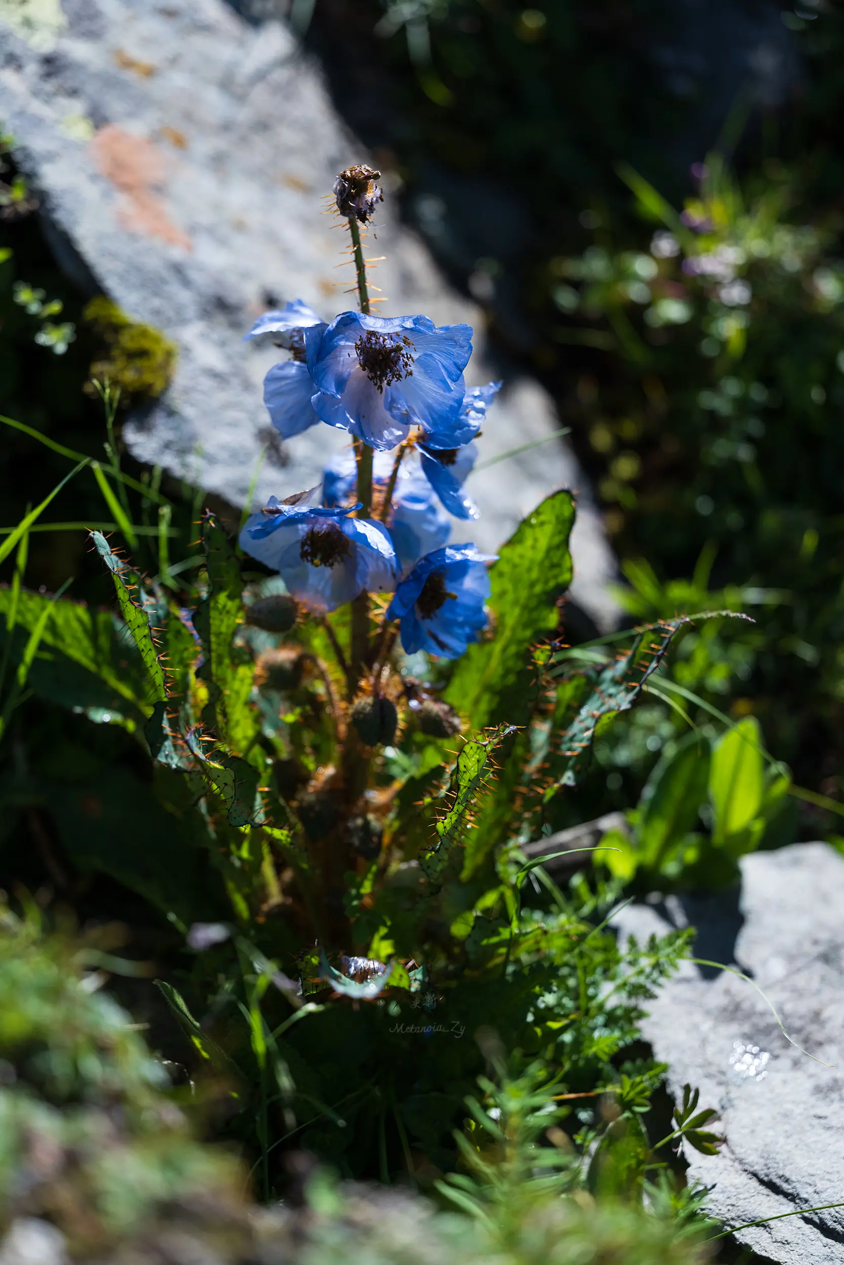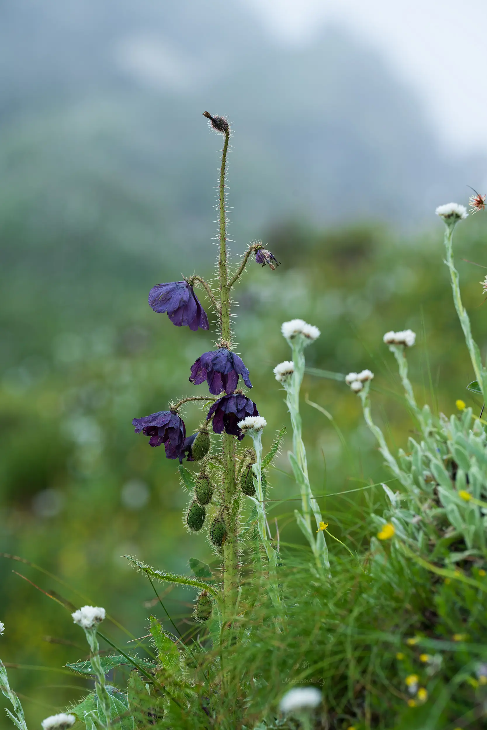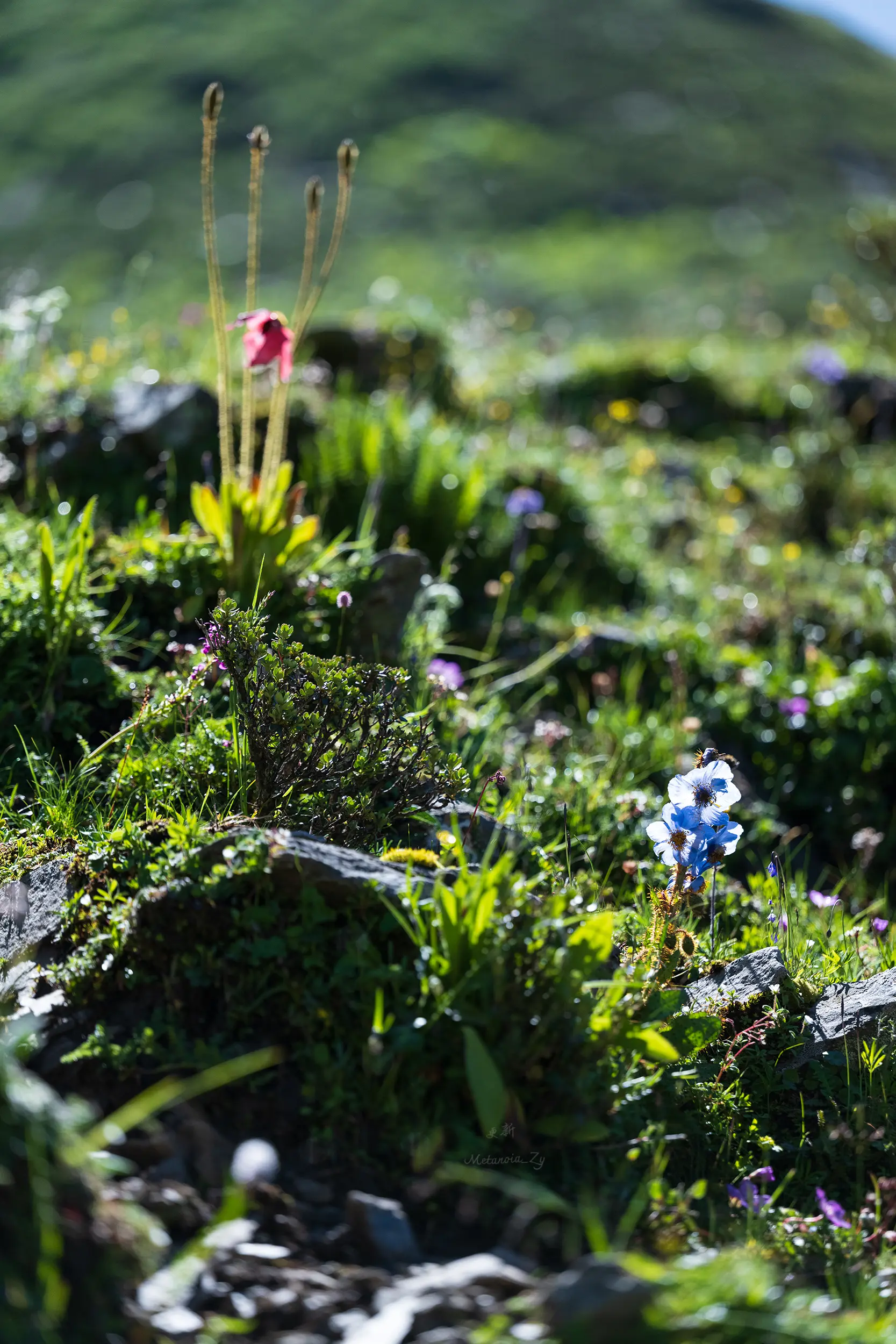 离天空最近的花—绿绒蒿。单人高山迂回,对牧道这种路感又不是太好,从开始的横切慢慢变成了竖切,辗转两个来小时终于找到了蓝色的巴郎山绿绒蒿,还好就背了一机一镜,不然得累死在山上,误打误撞还找到了紫色的紫斑绿绒蒿。酒红色嘞夹金山绿绒蒿也非常漂亮。