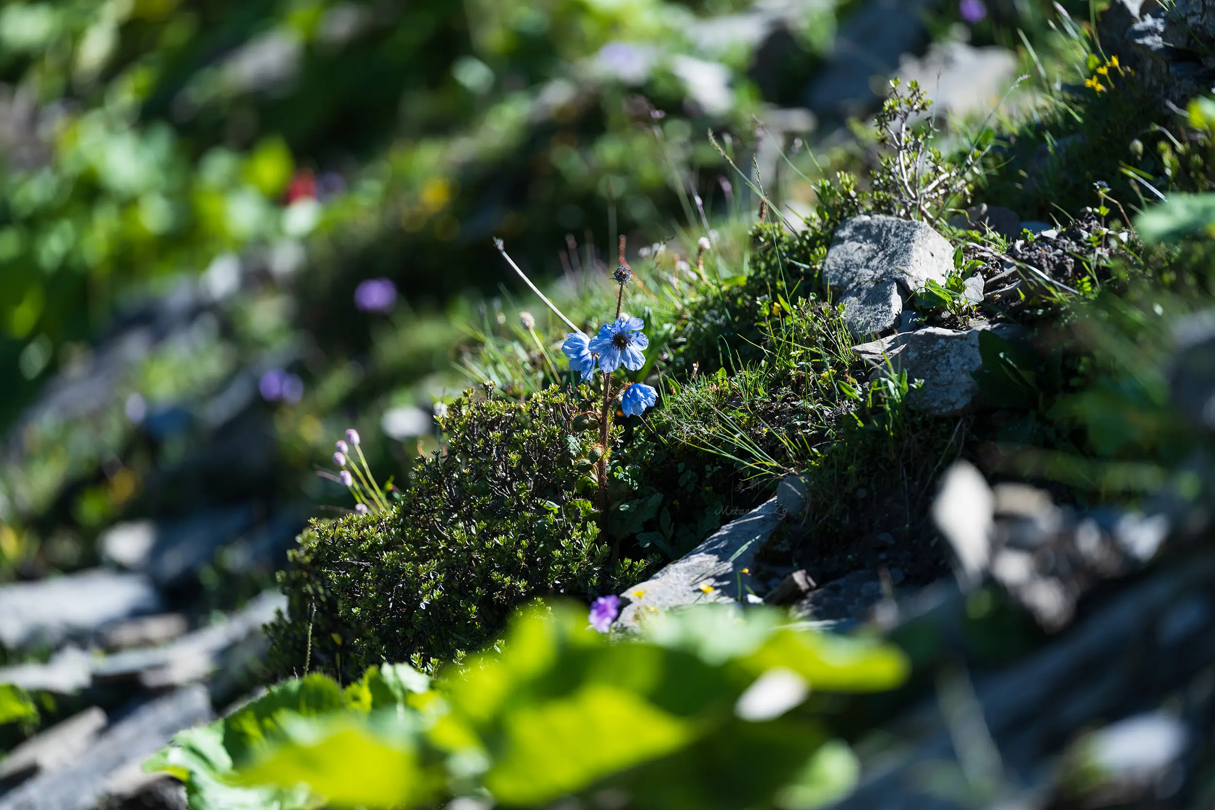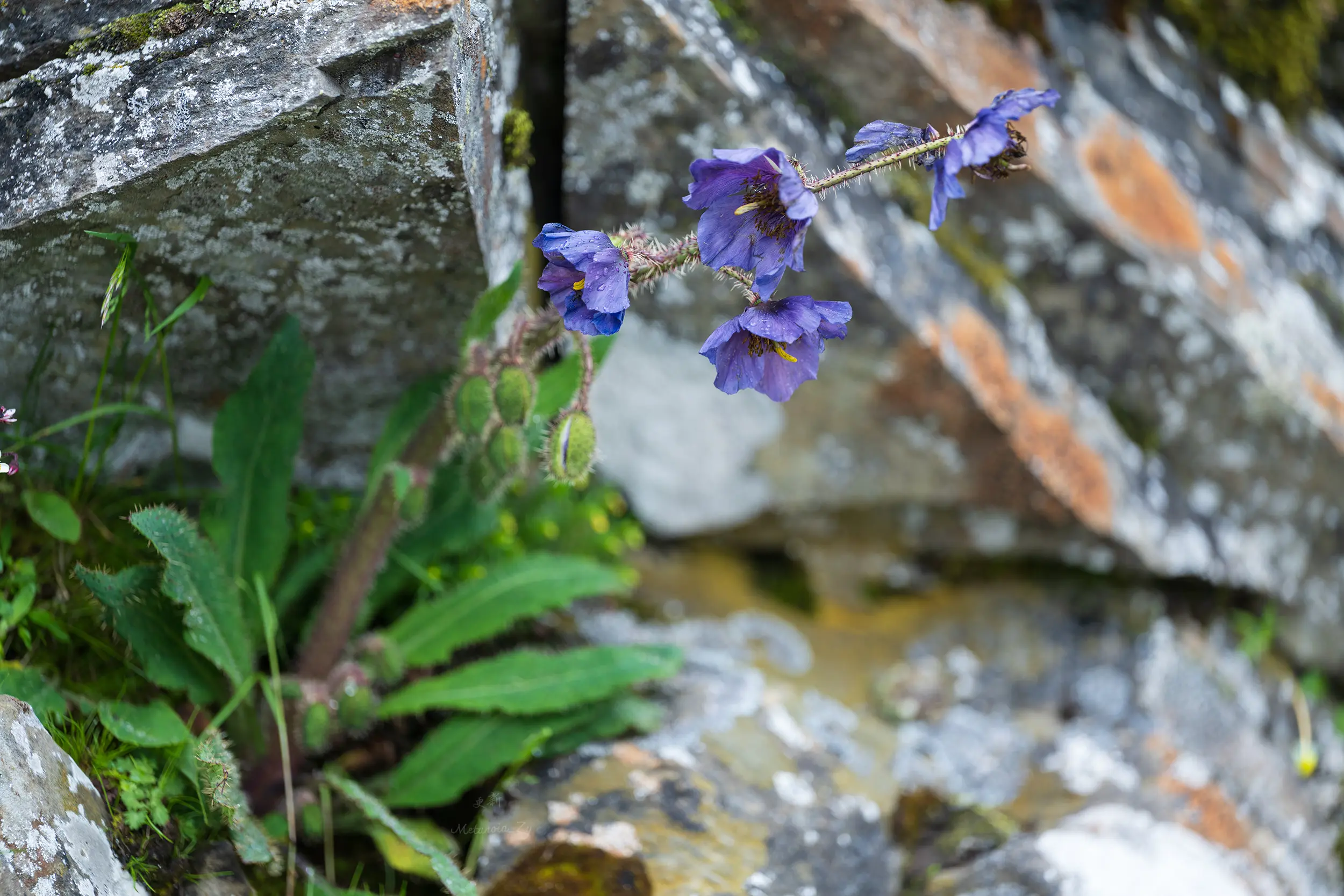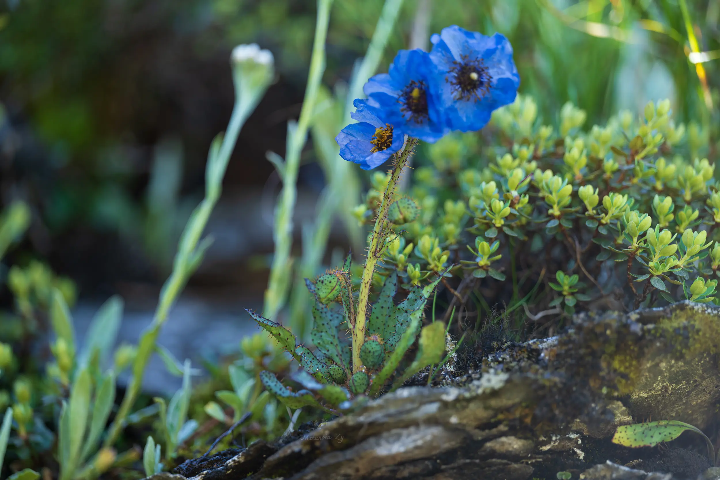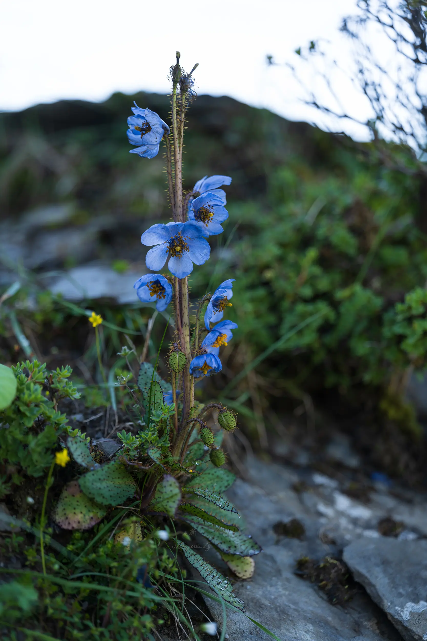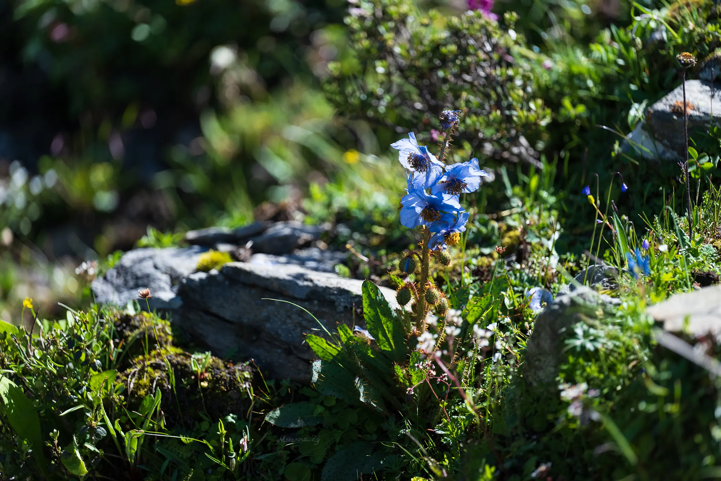 离天空最近的花—绿绒蒿。单人高山迂回,对牧道这种路感又不是太好,从开始的横切慢慢变成了竖切,辗转两个来小时终于找到了蓝色的巴郎山绿绒蒿,还好就背了一机一镜,不然得累死在山上,误打误撞还找到了紫色的紫斑绿绒蒿。酒红色嘞夹金山绿绒蒿也非常漂亮。