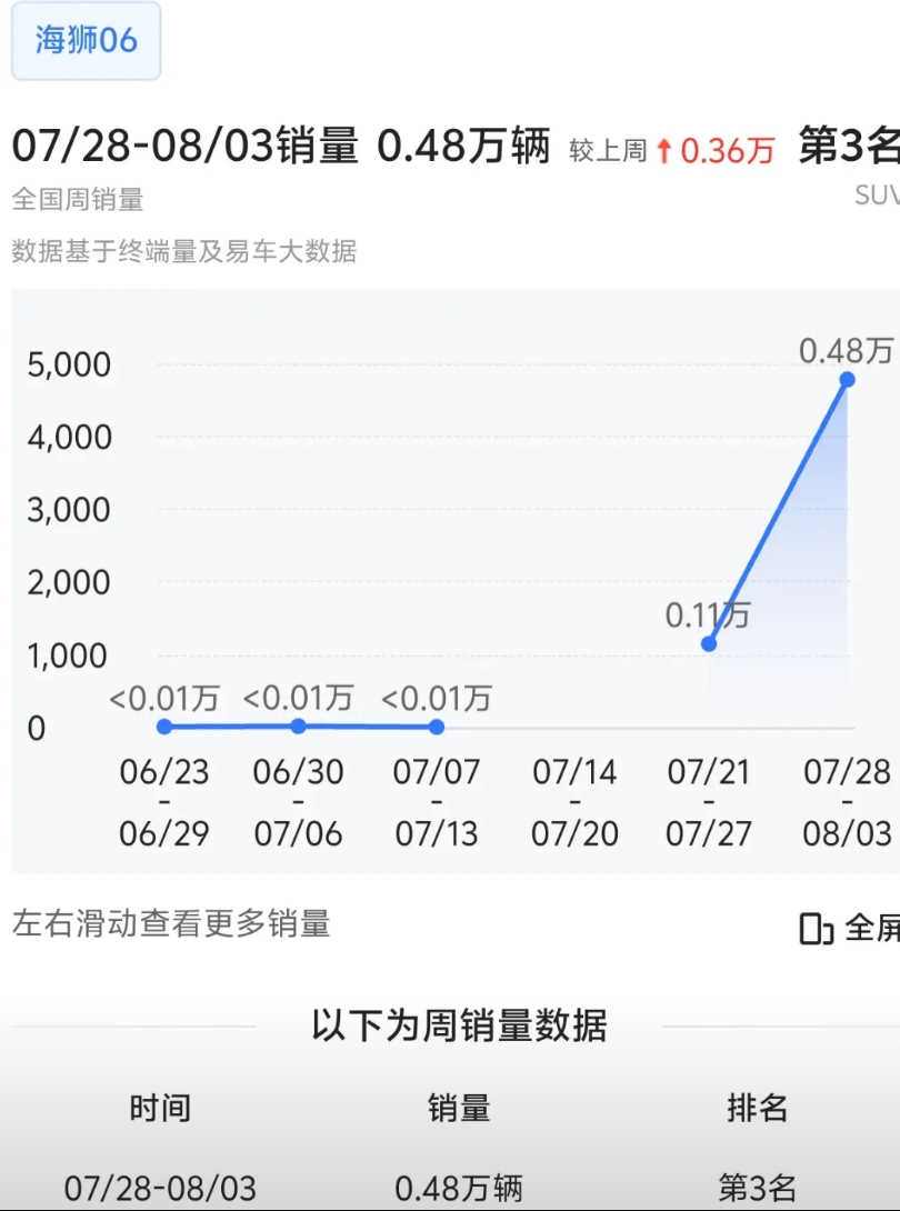 万万没想到 海狮06上市首周销量直接爆! 4801辆,A级SUV销冠到手 说以下