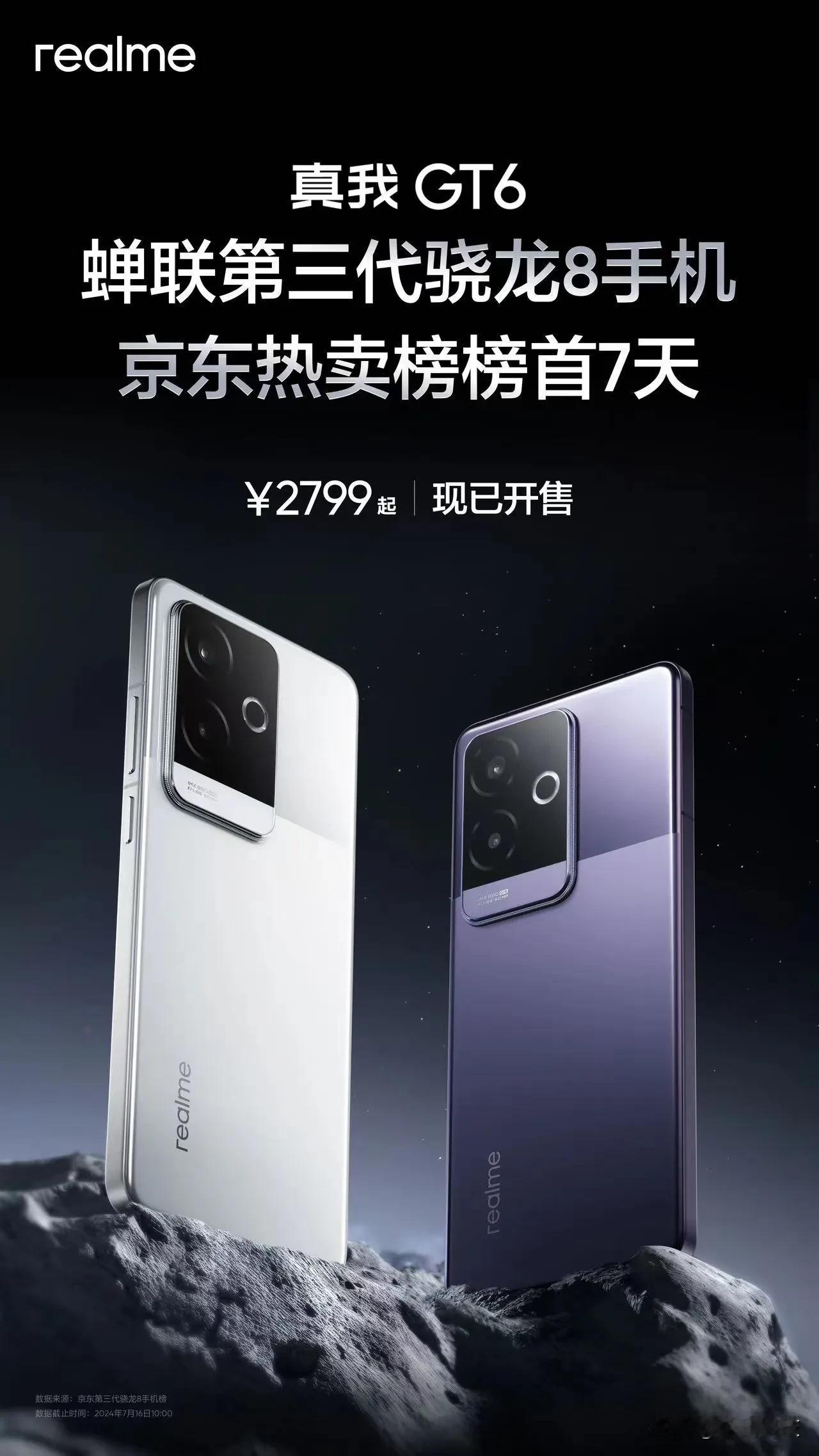 京东第三代骁龙8手机热卖榜,真我GT6蝉联榜首7天,爆单王! 手机品牌哪家强 5g新机推荐 次旗舰手机