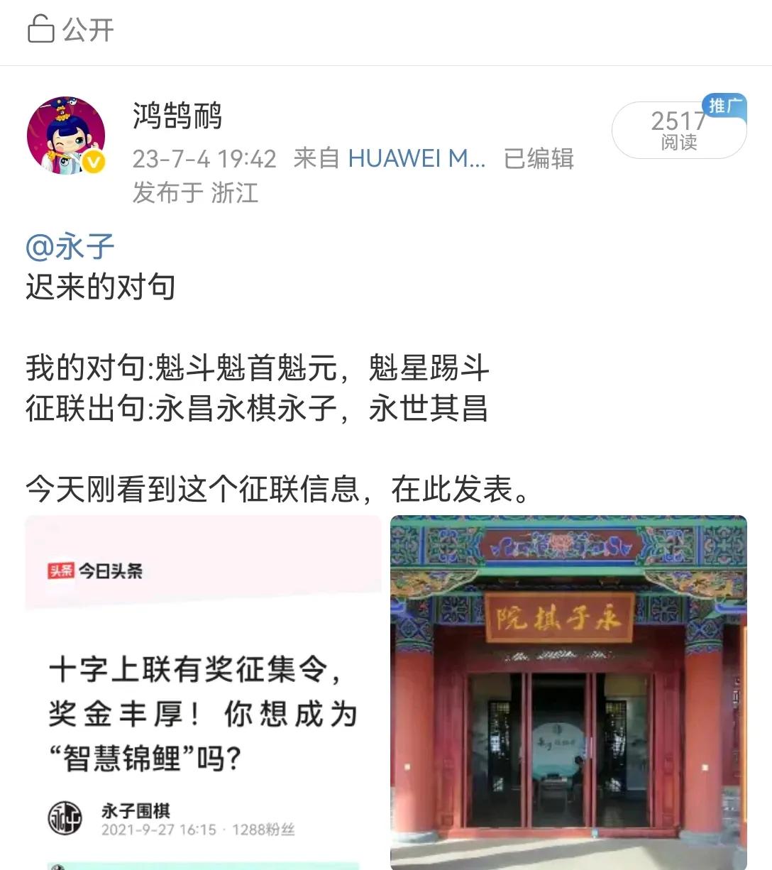我的对句:魁斗魁首魁元,魁星踢斗 征联出句:永昌永棋永子,永世其昌 看看是不是很有灵魂,对联给他对活了吧[比心]