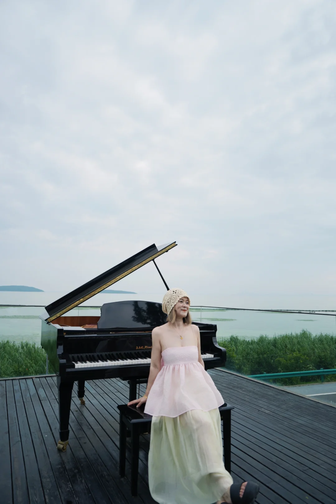 民宿天台有一架水上钢琴,湖风拂面,随便坐下都像在拍MV(推荐穿白裙或浅色衣服非常出片喔)