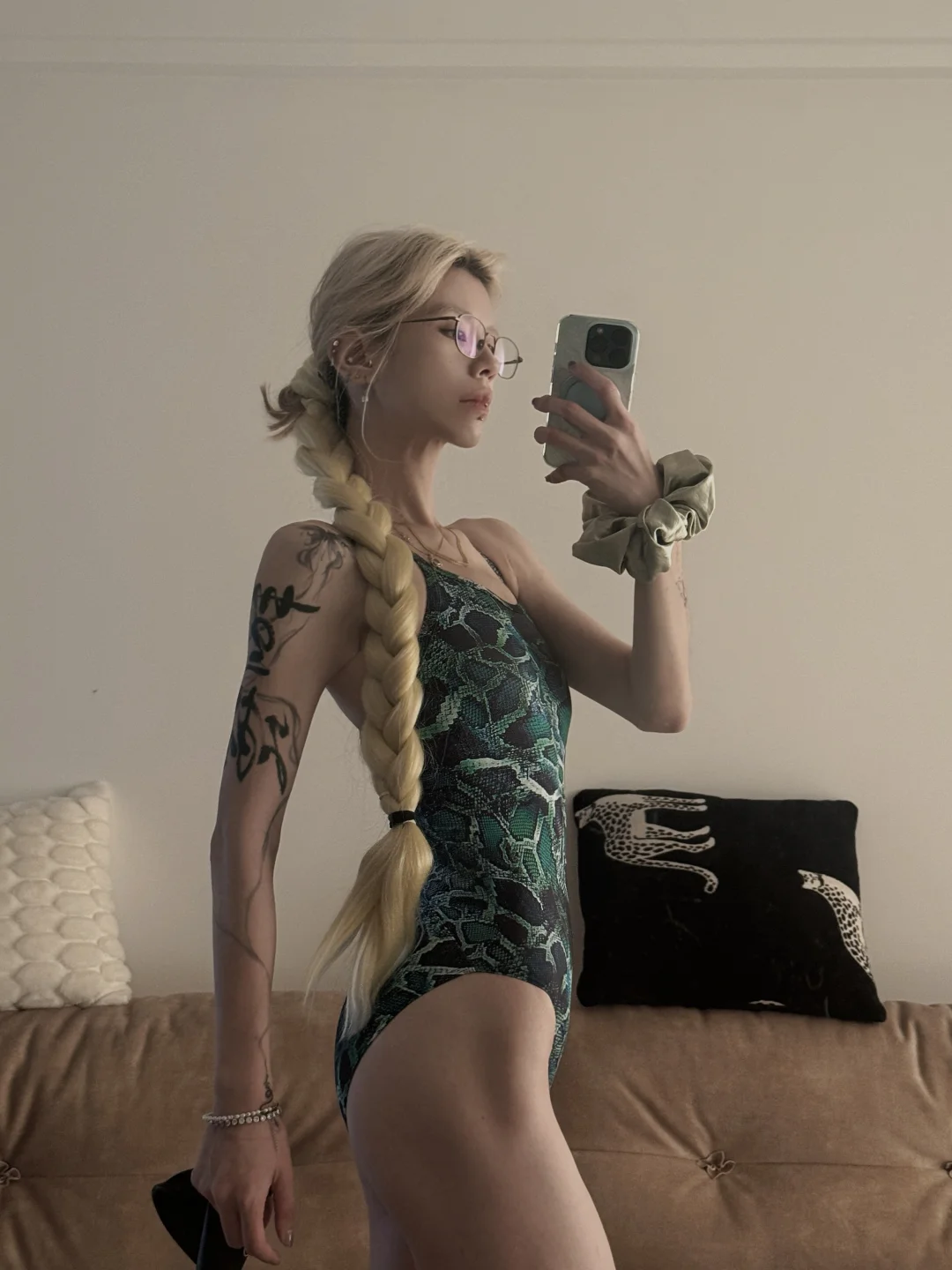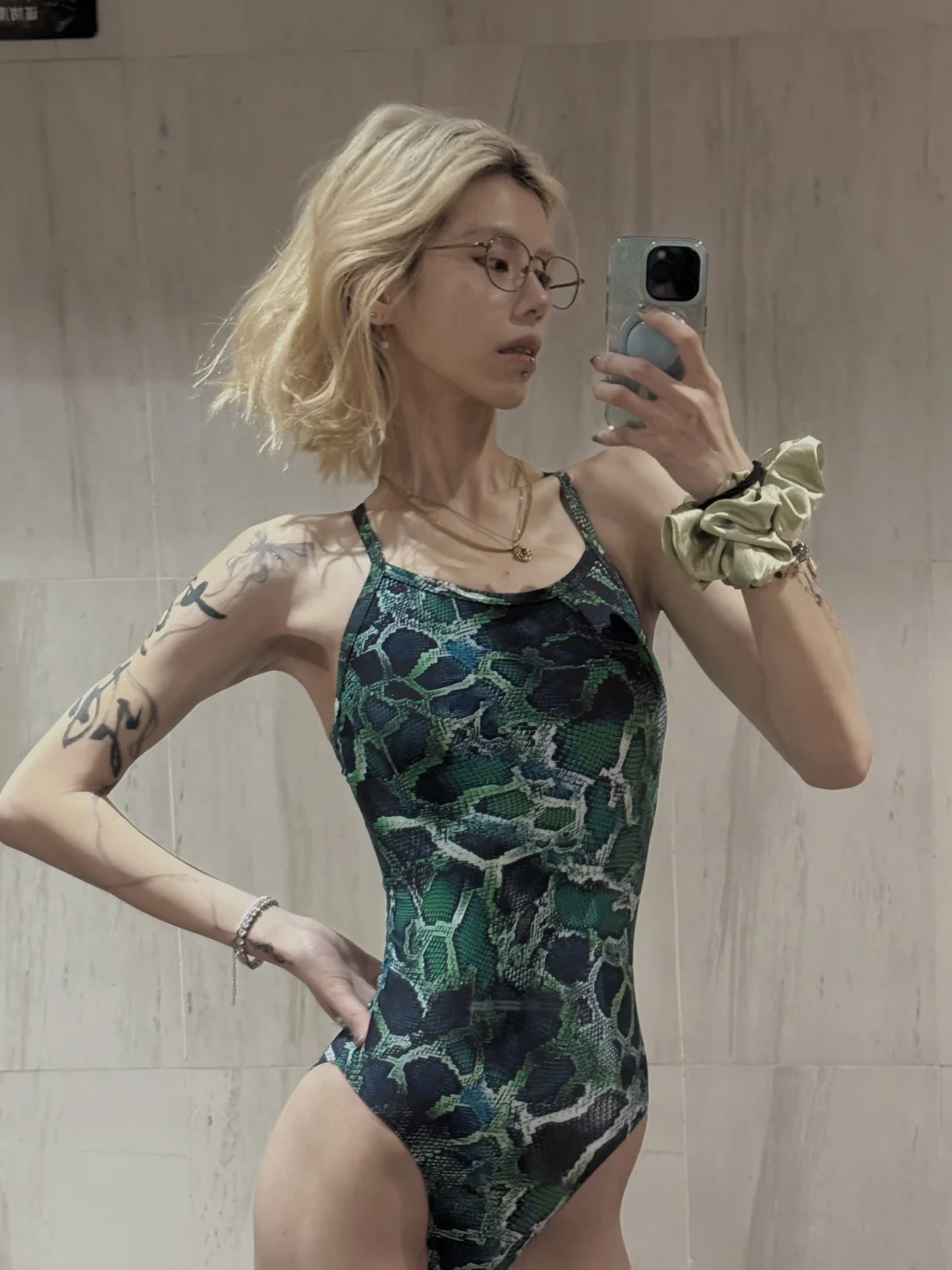 终于也是绿蟒皮上身了 这件泳衣真的集合了我喜欢因素的全部 蛇纹 绿色 单层 无🐻垫 轻薄包裹性好 高叉低阻 太适合高阶进阶的游泳宝们 绿色在水里也是超夏天✌︎˶╹ꇴ╹˶✌︎ 喜欢这种野性感张力🐍