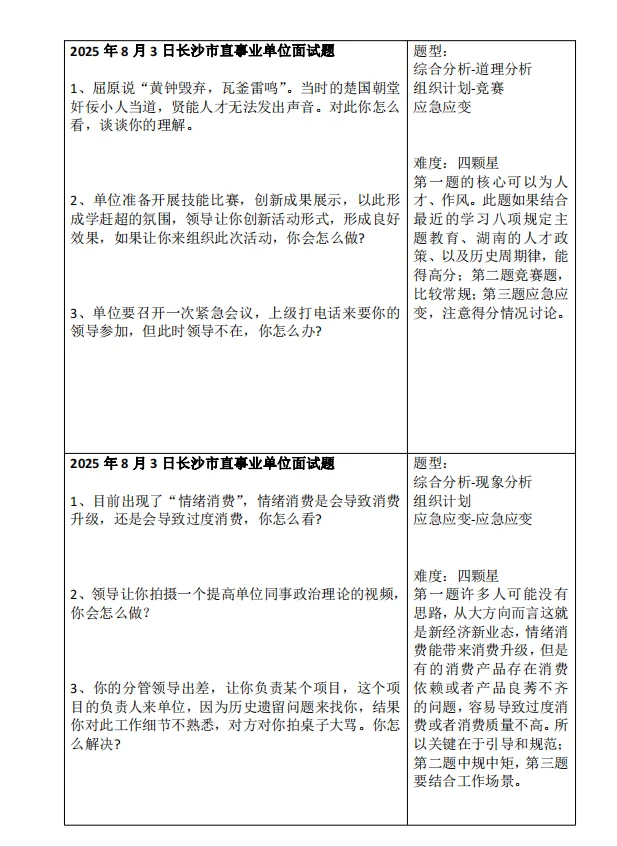 【首先】亲爱的友友们,博主改名字啦!以前Hhhhhhzzz这个名字我自己都记不住,又不想取个中规中矩的名字,所以野生可可来咯。 【其次】 本次市直考题难度还是有区别的,实践题蛮注重工作场景。综合分析题的话,大方向还是经济类政治类主题,但是切口很小。也会重点考察辩证思维、历史思维等。 【最后】 面试分数我观察了下,在81-86不等,总体分差不算大。祝福上岸的小伙伴,没上岸也没有关系。好好总结,总会有心仪的岗位在等你~