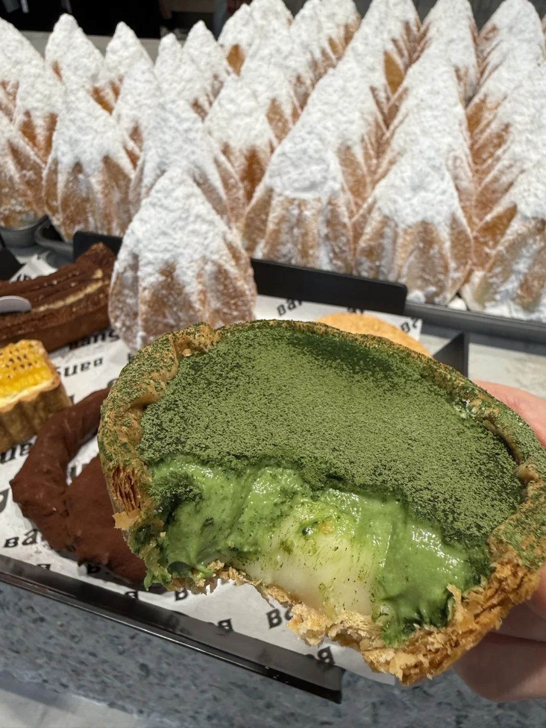 风很大的面包店!南京终于有了!买了十几个!亲测好吃…… 抹茶流心挞我超爱!抹茶香气特别浓郁……咬一口是真的会流心,里面的麻薯特别加分! 他家黄豆包也做得巨好吃!超级松软,里面的麻薯包裹着红豆,吃起来又香又糯……
