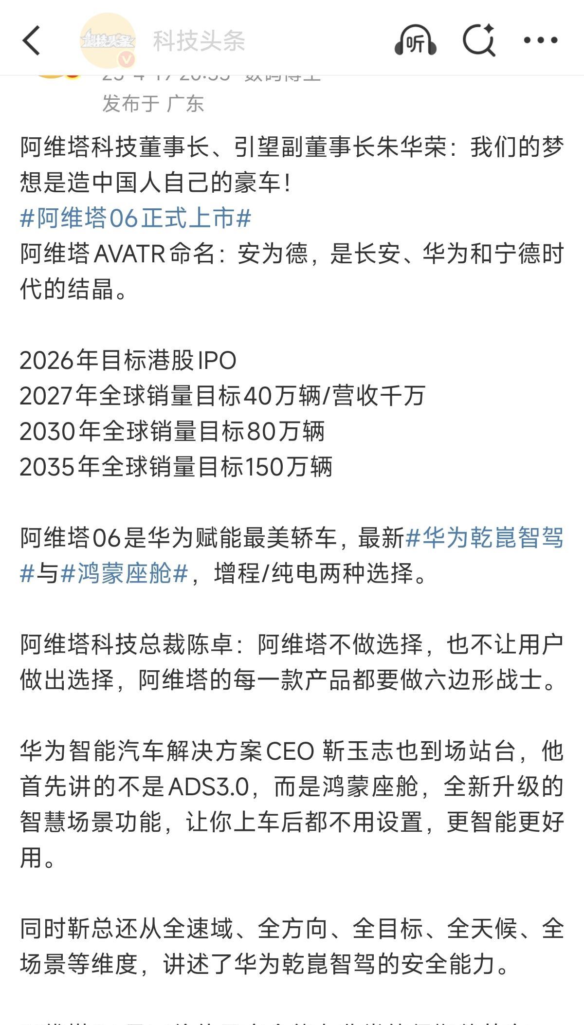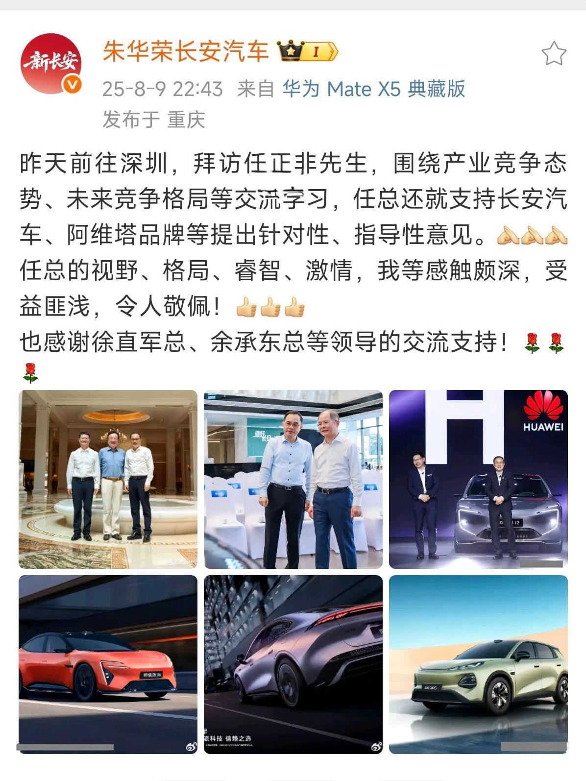 新央企长安汽车董事长、阿维塔科技董事长、引望副董事长、我互联网上的兄弟朱华荣,昨