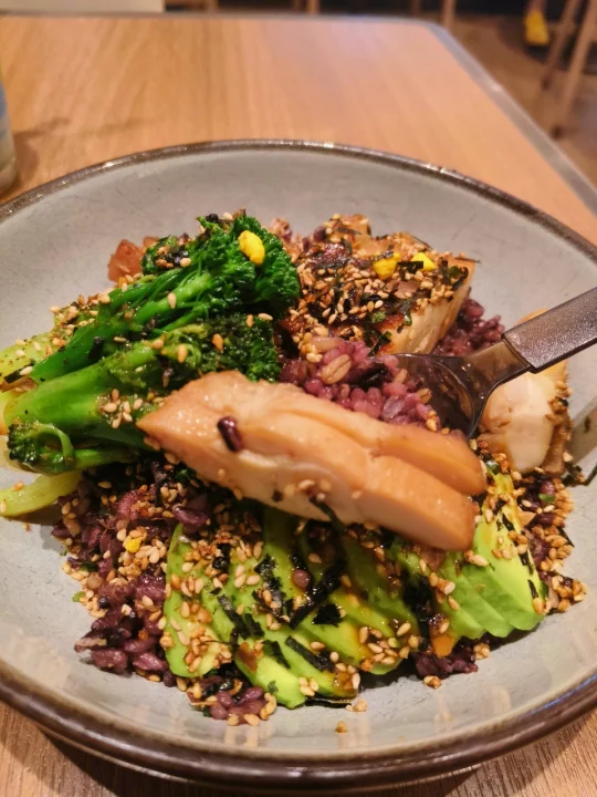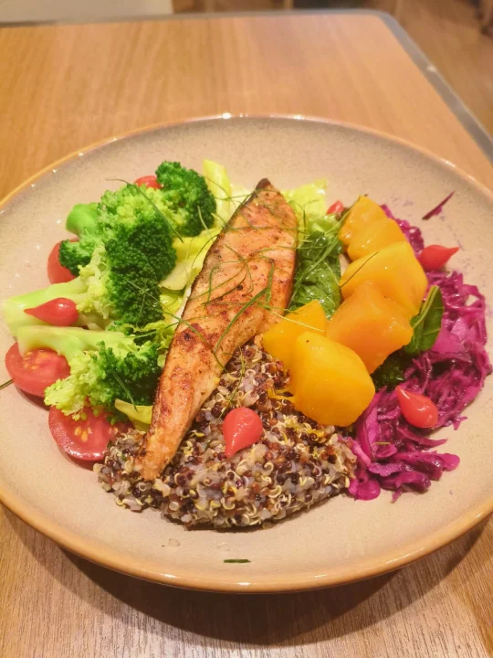 三纹鱼是慢煎熟的,口感佳,配上纤维含量高的藜麦,再搭配各类疏菜,夏日佳品