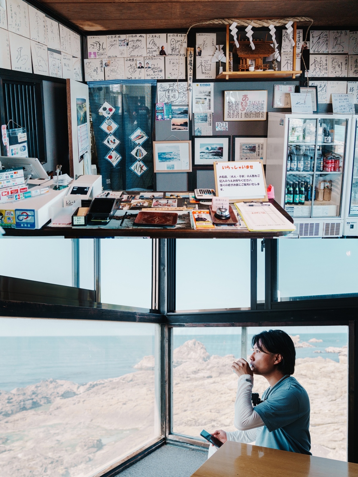 导航到“鮫町小舟渡平10号”时差点无语——锈迹斑斑的铁皮屋+孤零零杵海边,像废弃仓库🤯!推门秒打脸:落地窗直面太平洋🌊,浪花仿佛拍在脚边!榻榻米席位超宽敞,工作日可预约窗边位,周末早去抢座。餐厅外面,也非常适合拍照。
