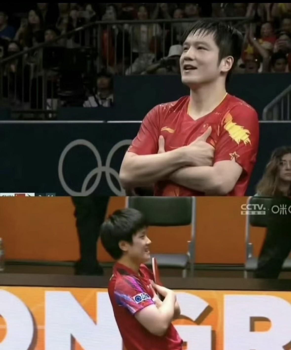 真是恨海情天。当张本智和像每个胜利后的乒乓球选手,设计动作时,王皓总是会气到肝火旺盛,口不择言,被送上热搜。 虽然国乒小皮子们输球,已经是常态化事件,但是能够让王皓登陆中国全平台热搜的表情管理和怒火中烧热议的,只有小将们输张本智和之时: 如同美国大满贯,林诗栋输球赛后,王皓当场的暴怒,让各大解说间沉默,却不知道如何挽尊,狠狠上了波热搜。 但是比较冷幽默的是,现在越来越多的乒乓球选手会设计自己赢球后的庆祝动作。 例如,莫雷加德在横滨冠军赛,延续了他的个人经典庆祝动作,半蹲在地上的猴子。 虽然他经常被昵称“瑞典大猴”,但是他这个动作不是在致敬美猴王,而是他的父亲。 王楚钦则有一个狮子王的经典怒吼,从乒超到国际赛,都能看见;还有一个手指背后的China,这套狂炫的动作已被他的粉丝川上流星模仿。 张本智和则喜欢致敬自己的乒乓选手。他喜欢的结构非常严谨。 虽然这件事情,对王皓不太友好,但当他收到职业生涯第二枚银牌的时候,有个5岁的小孩在电视机前高兴:张本智和。 张本智和小时候喜欢马琳,到张继科出来后,他就喜欢张继科了。 此时,你可以看出他的审美:唯爱奥运单打金牌,是唯爱。他就从小馋这个。 但是后来起了变化:2014年的时候,身高1米五的张本智和,喜欢樊振东了。 这时候的樊振东,三大赛挂零中,连里约奥运会的P卡都没拿上呢。 若干年以后,他在亚锦赛夺冠后,致敬了樊振东。当然,由于樊振东致敬的姆巴佩。 所以对足球完全无感的张本智和,就是致敬樊振东致敬姆巴佩。 当然,当天王皓和他的梯队、和他迅速抽开的手、失控的表情也同样引发了广泛的热议。 这一次,张本智和致敬的是喜剧演员罗伯特秋山的标志性动作,掀起球衣蒙住脸庞,想给他现场的父亲看看。 但是吧,这个动作王皓应该很熟,他不认识那个喜剧演员。这就是马琳2008年北京奥运会男单决赛战胜王皓后,做的动作。 恨海情天,不知道你在致敬谁,但每次都令人生气。
