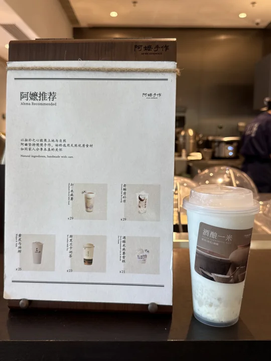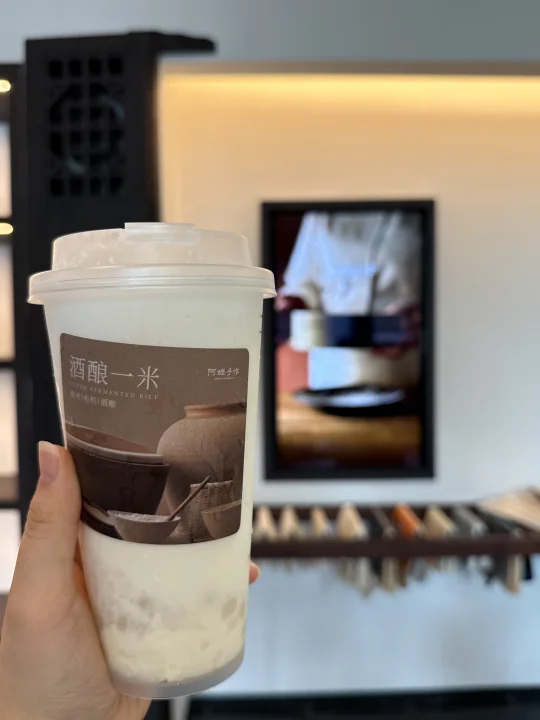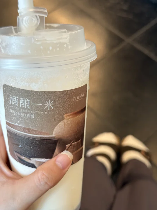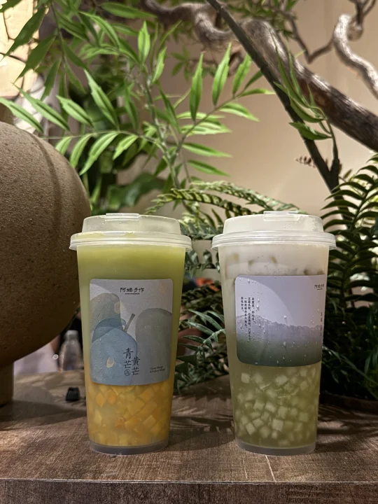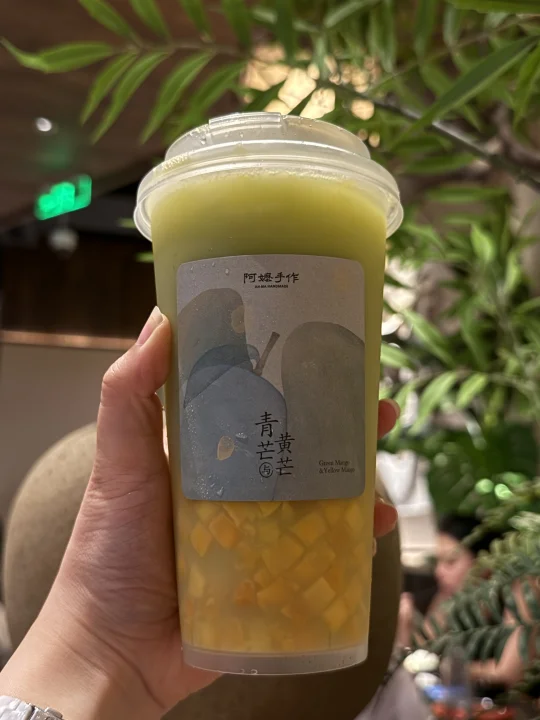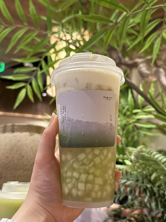 最近迷上了阿嬷 除了又喝了新品玉菇冰茶 还尝了种草很久的酒酿一米 里面的山药丸子好糯好糯 酒酿味很浓郁 鲜青芒冰茶超极清爽 芒果果粒给超多 芒果脑袋大满足