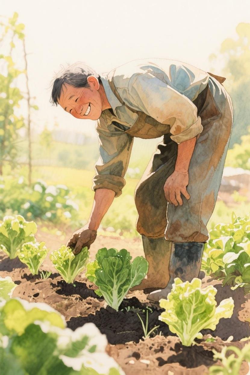 #AI随心绘#在土地里劳作的身影,似在耕耘生活。每一株菜都是时光的馈赠,藏着生命