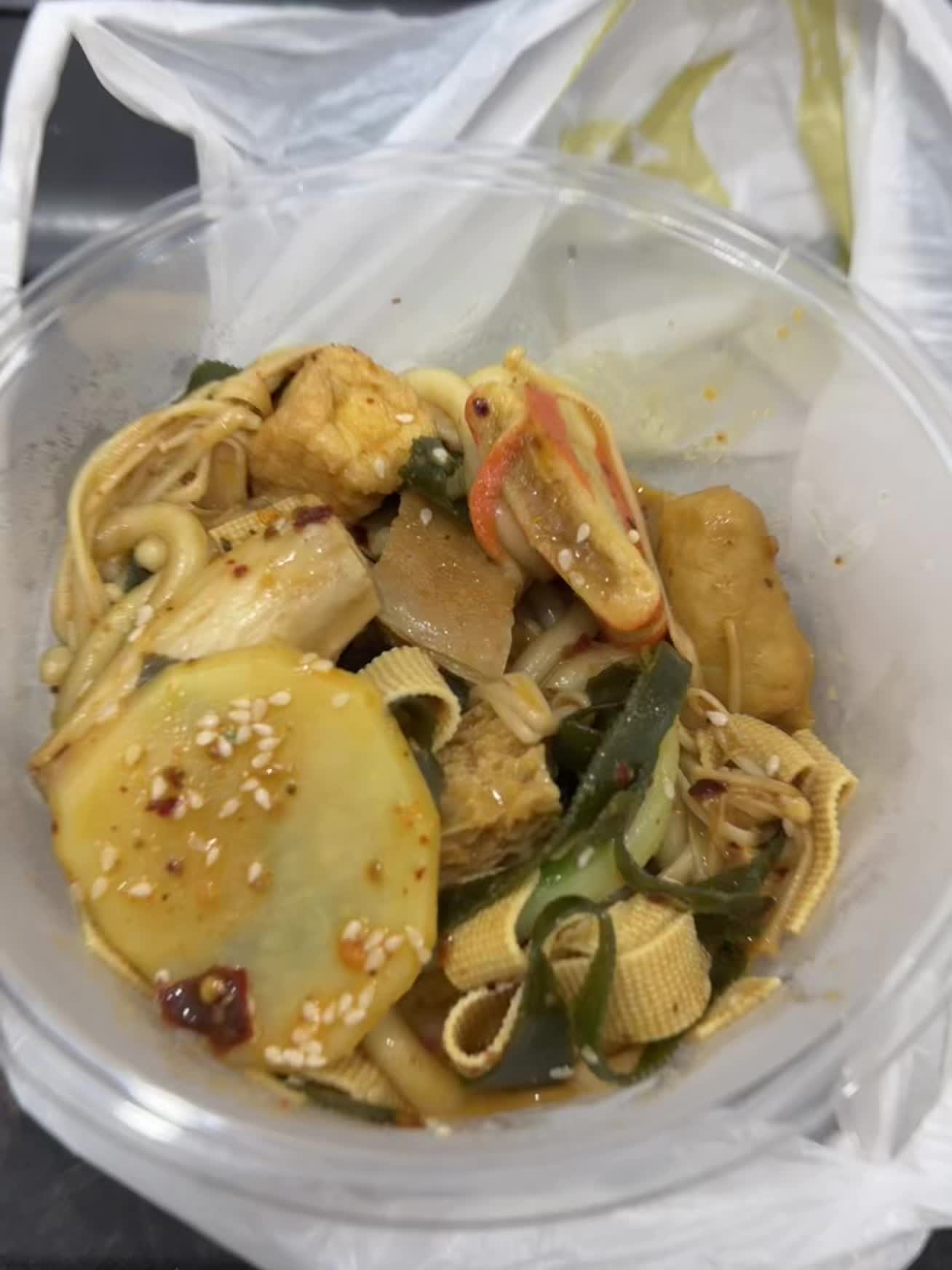 告诉服务员不用打包了我已经装起来了