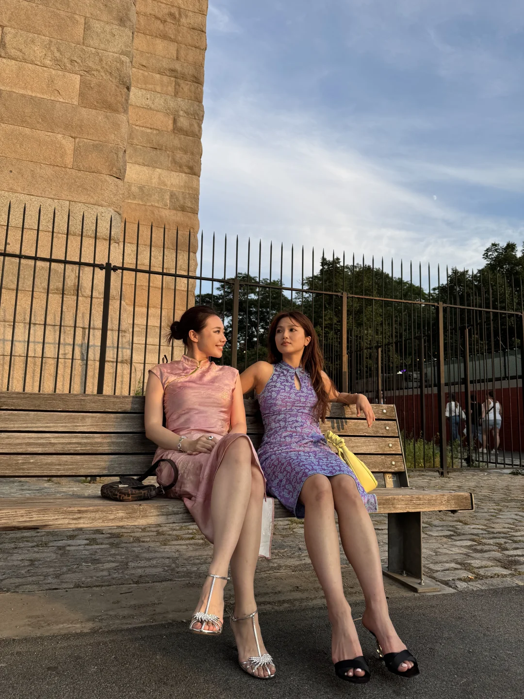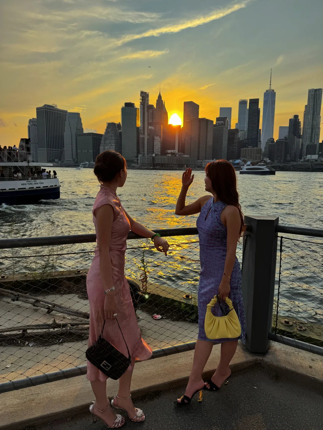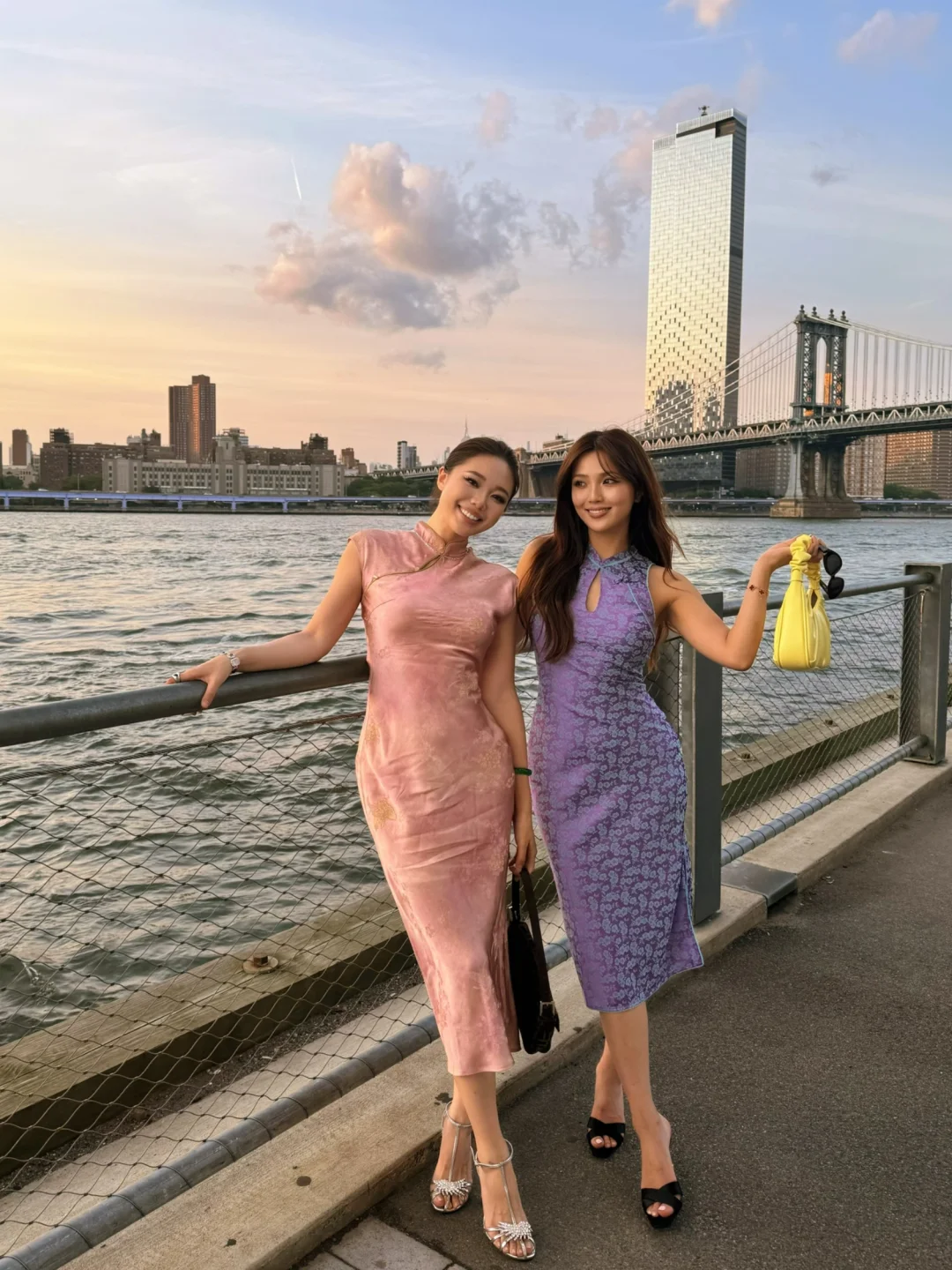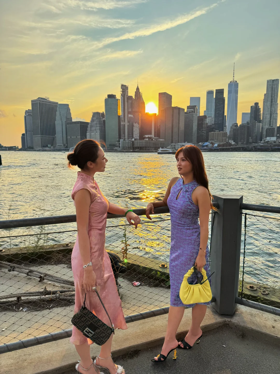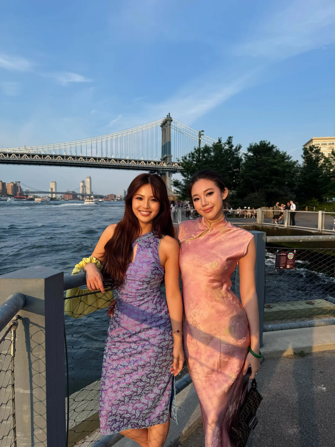 和姐妹一起相约穿起旗袍来布鲁克林大桥下来拍照刷存在感了,啊哈哈哈,我的脚也成功战损,ysl果然不是人穿的[扶墙R] 我们去时候正好是golden hour~ 在大桥下笑着聊家常, 我问姐妹:要不要放点歌听,贼有情调 姐妹道:就安静的chill一下挺好 我道:放贾斯丁比伯的baby吧,比较嗨 姐妹:…… 我就是那个一意孤行的白羊 你们懂我的幽默吗,不懂算了😌