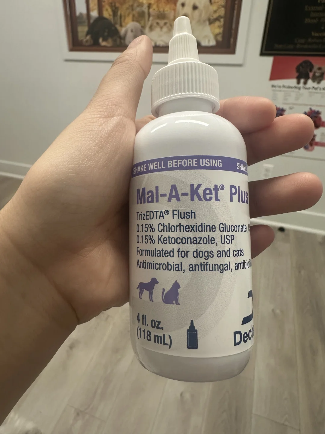 Emma前阵子游泳+grooming,导致耳朵发炎了,耳道里面全是棕色油蜡。发现她一直甩头+抓痒,掀开大耳朵一看果然就是了。她小时候有过一次,我们也是立马送去了医院,医生取了耳蜡显微镜一看是yeast,开了两种药膏连续抹1-2周。这次是一模一样的操作,我感觉其实下回可以在家自己抹药,不需要再去医院了。